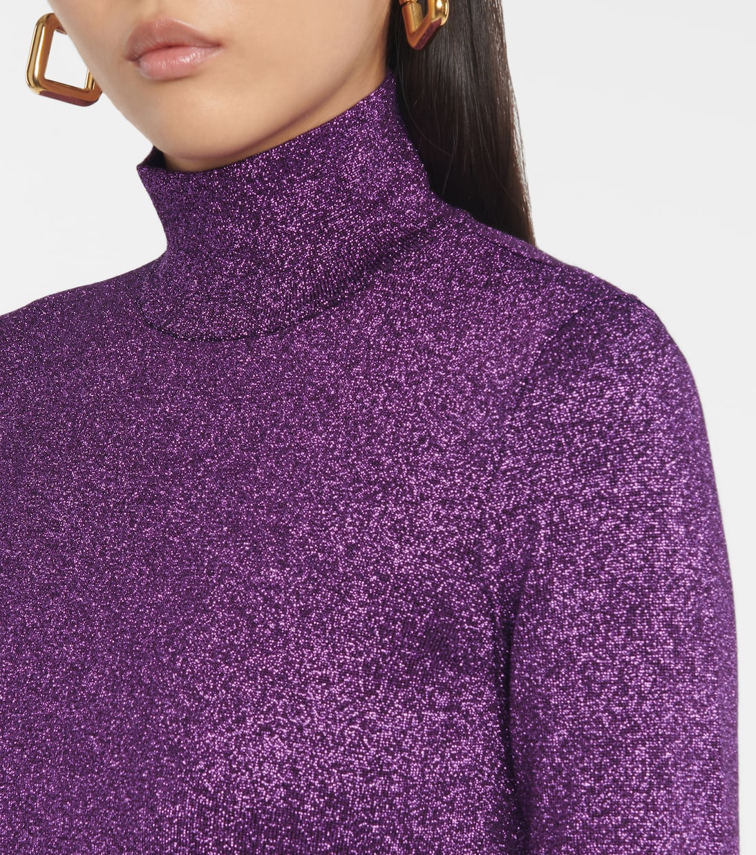 STELLA McCARTNEY предлагает смелые базовые слои в этом свитере с высоким воротом. Изготовлено из эластичного, блестящего трикотажа, обеспечивающего плотное прилегание, и представлено в насыщенном фиолетовом оттенке.