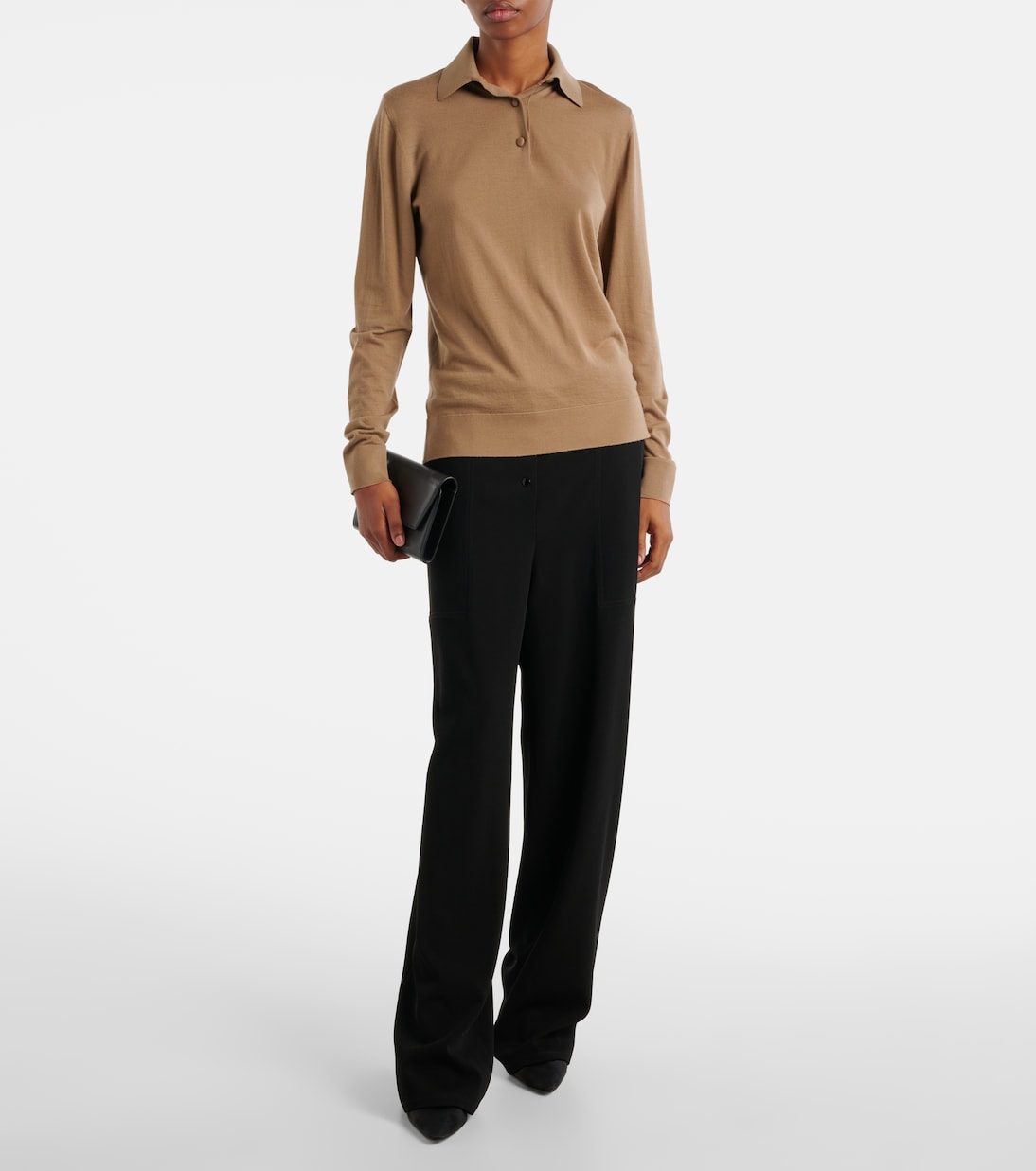 The Row демонстрирует, что истинная изысканность достигается благодаря продуманному дизайну базовых вещей, таких как свитер-поло Ipanelli. Изделие изготовлено из теплого, но легкого шерстяного трикотажа и дополнено обтянутыми пуговицами, создающими изысканный тон.
