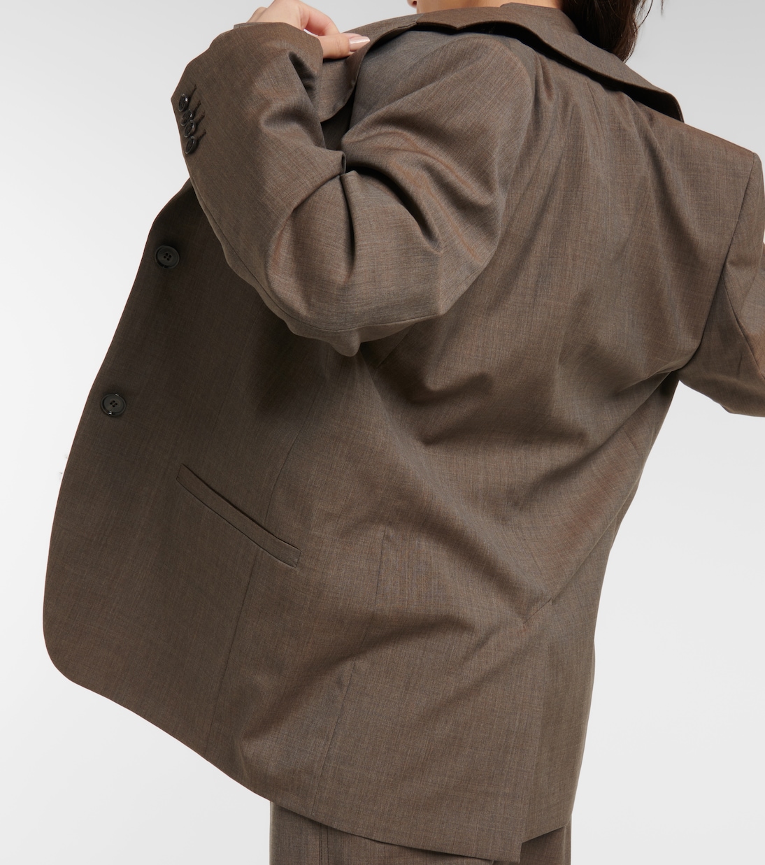 Totême - мастер в искусстве воссоздания классических стилей рабочей одежды в современной интерпретации, как, например, в этом блейзере. Изделие полностью изготовлено из шерсти и имеет свободный силуэт.