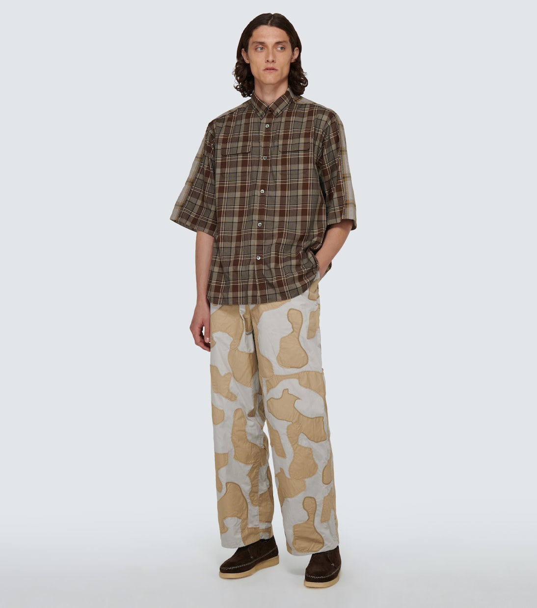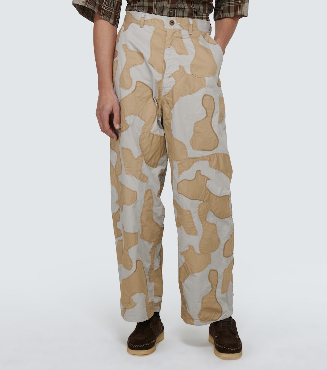 UNDERCOVER изготавливает эти струящиеся брюки широкого кроя из 100% хлопка в серо-бежевой цветовой гамме с камуфляжным рисунком.