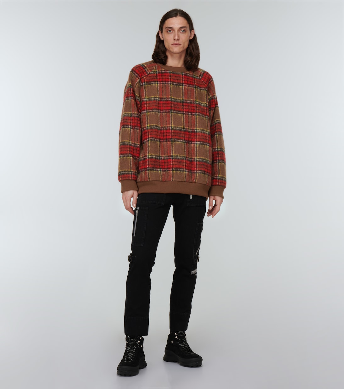 Undercover придает этому объемному свитеру неподвластный времени вид благодаря узору в стиле тартан и нежной отделке с начесом. Изготовлено из плотной шерстяной фланели, имеет круглый вырез горловины, рукава реглан и отделку из ребристой вязки.