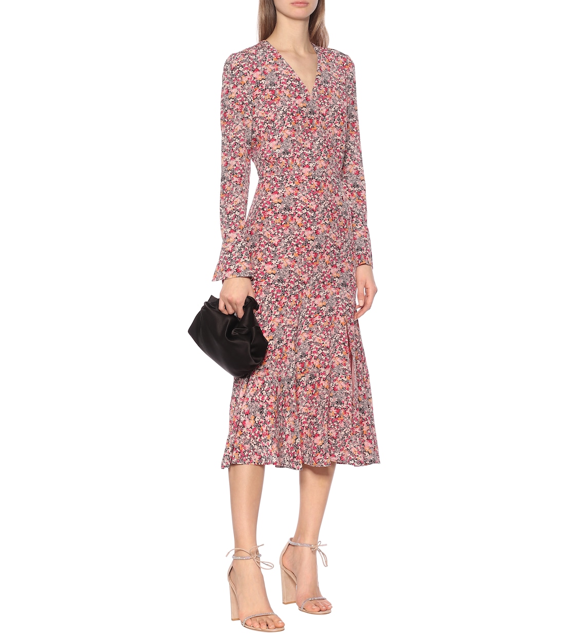 Абстрактный розовый принт Драконий фрукт на платье Martha от Altuzarra обязательно вызовет восторг. Это платье миди сшито из шелка, который будет красиво струиться при ходьбе. Его форма определяется V-образным вырезом и соблазнительными разрезами по бокам.