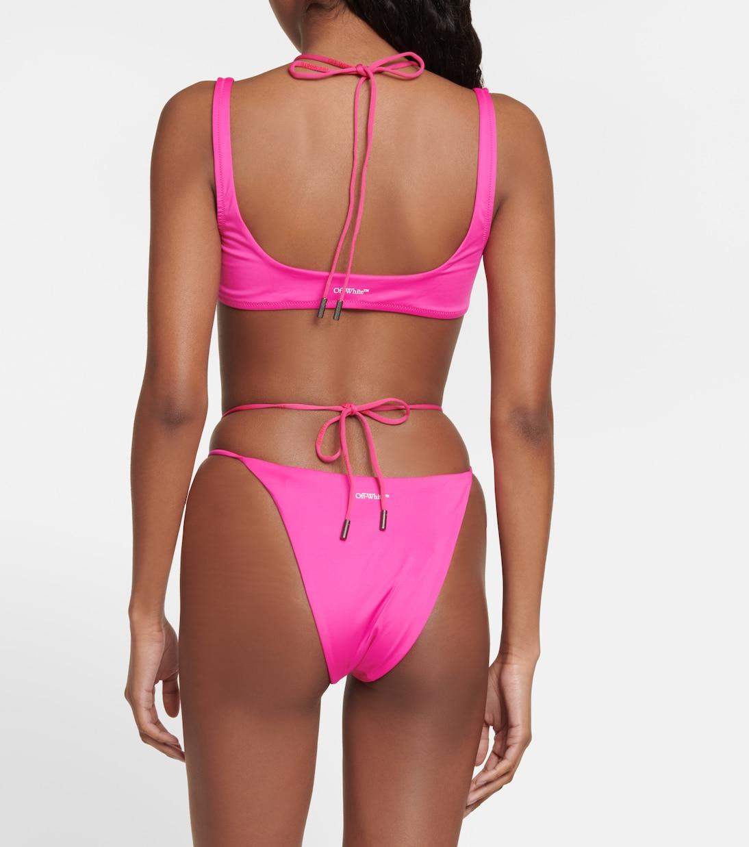 Бикини Cross Coulisse от Off-White с бретельками произведет фурор у бассейна. Верхняя часть имеет широкий вырез, а нижняя часть завязывается на талии с помощью ленты с логотипом и имеет минимальный размер.