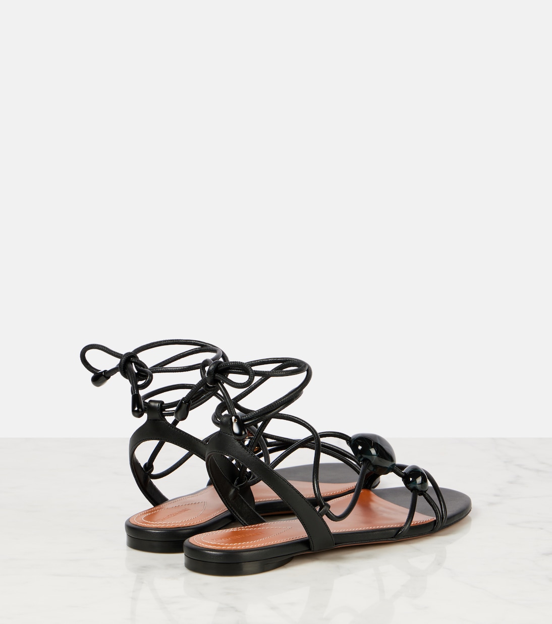 Босоножки Gleam от Zimmermann изготовлены в Италии из кожи и оснащены кожаными стельками на подошвах, имеют округлые силуэты с открытым носком. Эта модель оснащена шнурками для застежки и галькой с эффектом камней.