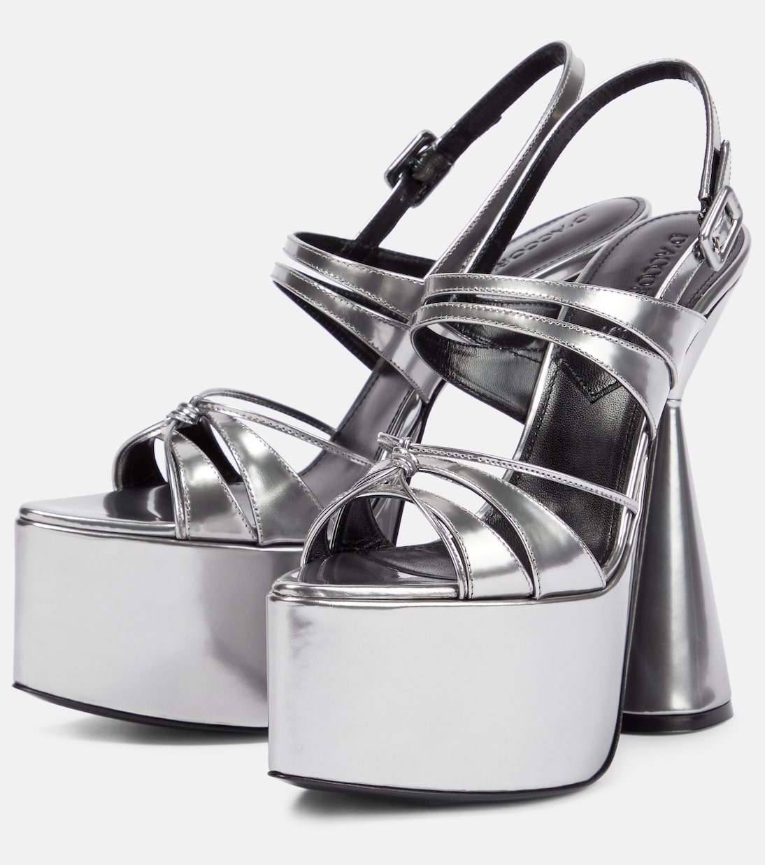 Босоножки на платформе Belle от D'Accori изготовлены из кожи металлического оттенка с блестящей отделкой. Туфли с открытыми заостренными носками, каблуками-платформами и скульптурным расклешенным каблуком, оснащены ремешками с пряжками для надежной посадки.