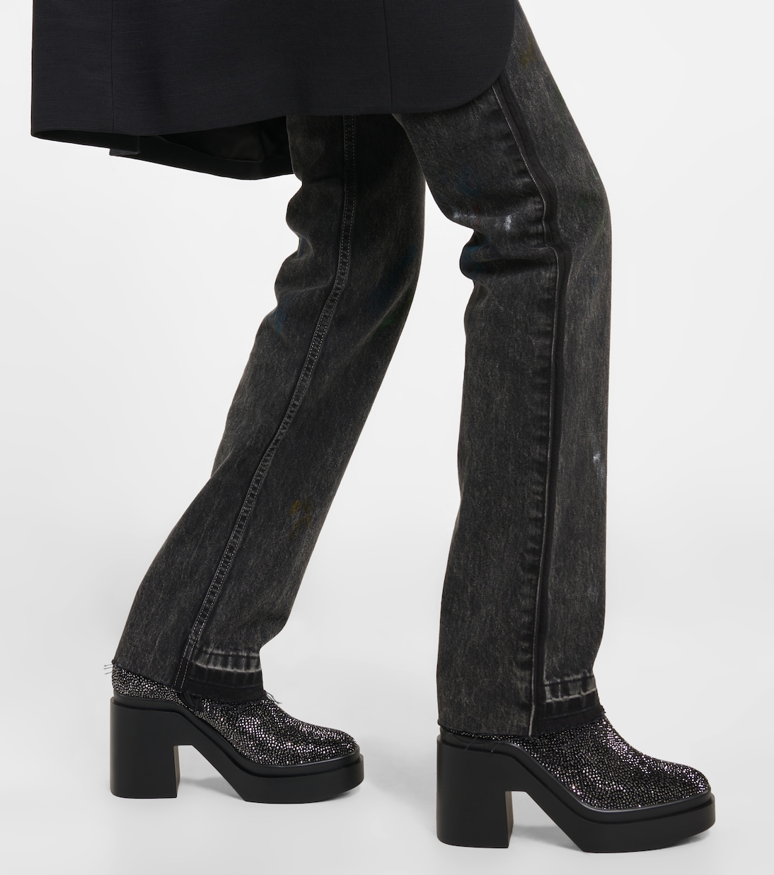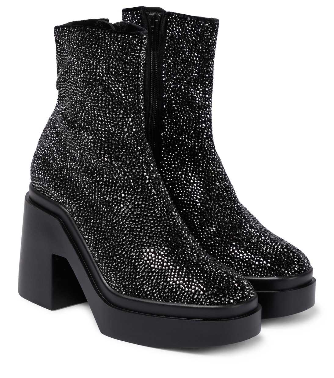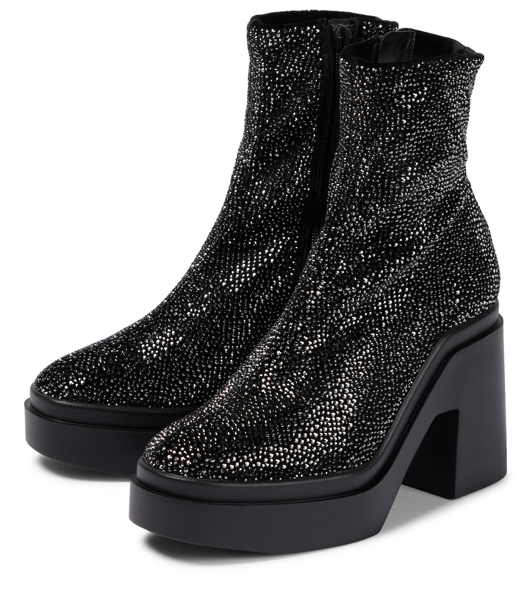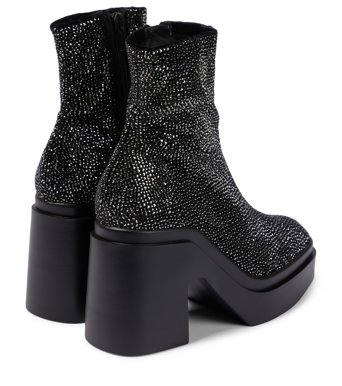 Ботинки Nava от Clergerie изготовлены из бархата и украшены кристаллами по всей поверхности. У них подошва на платформе и блочный каблук, которые напоминают десятилетие диско.