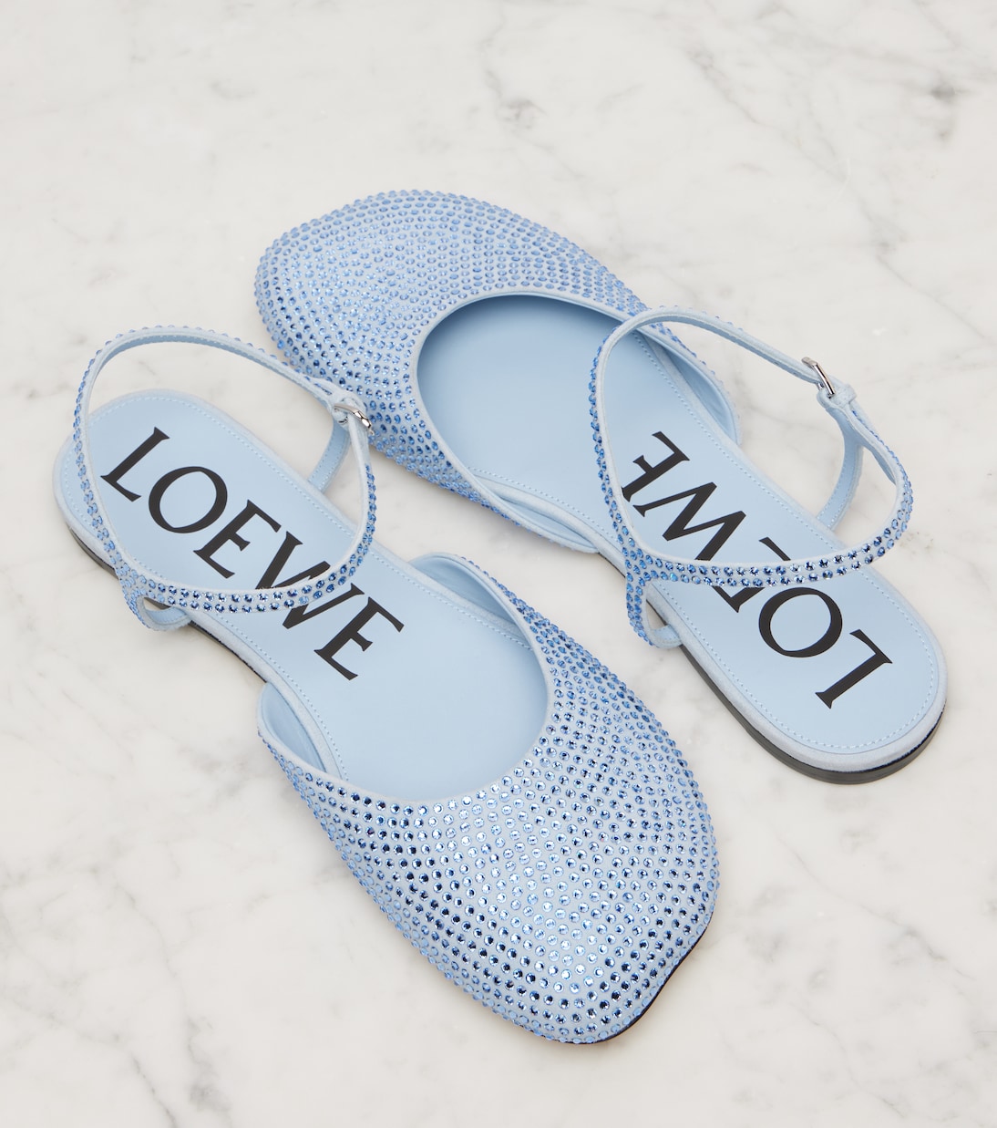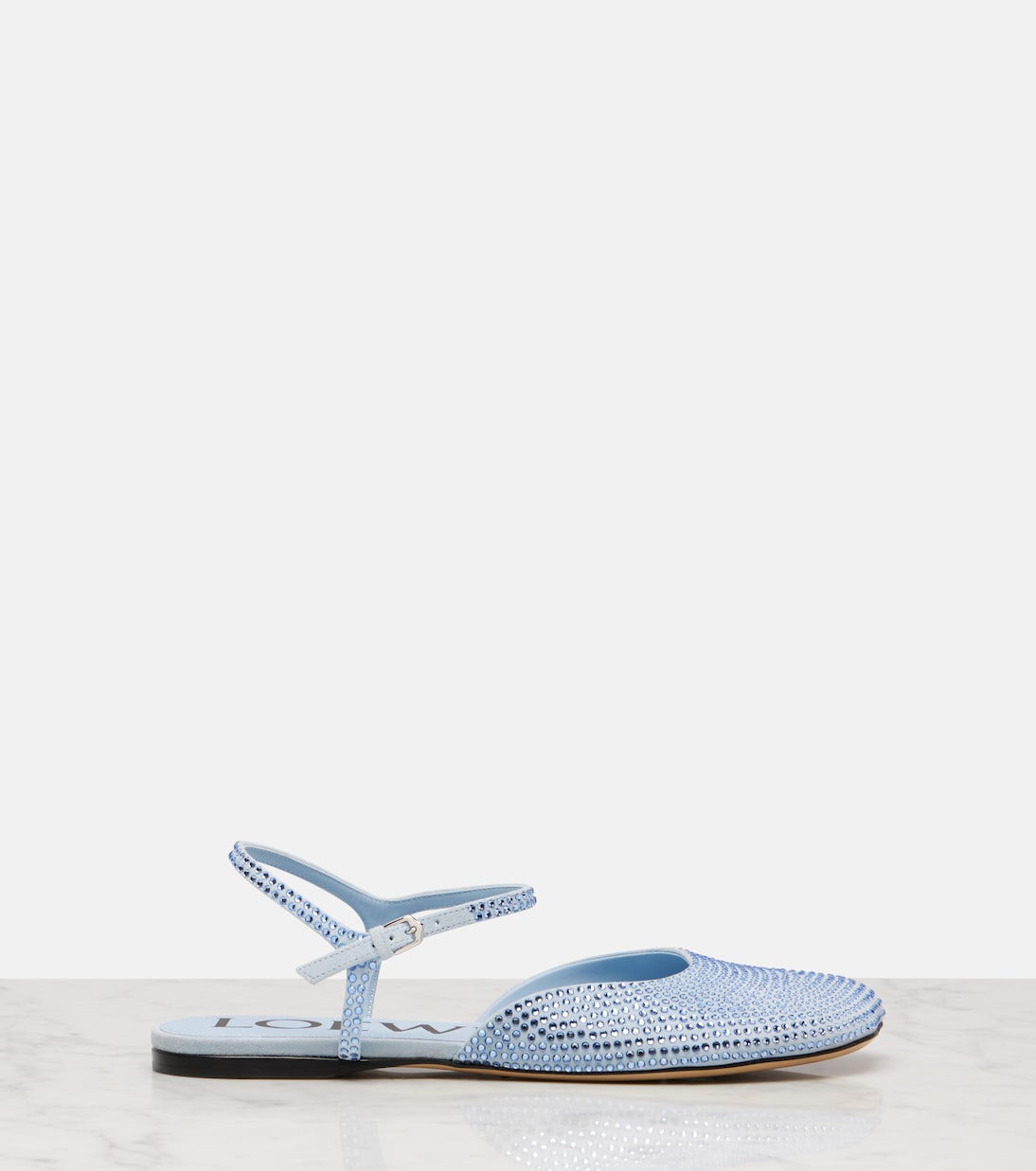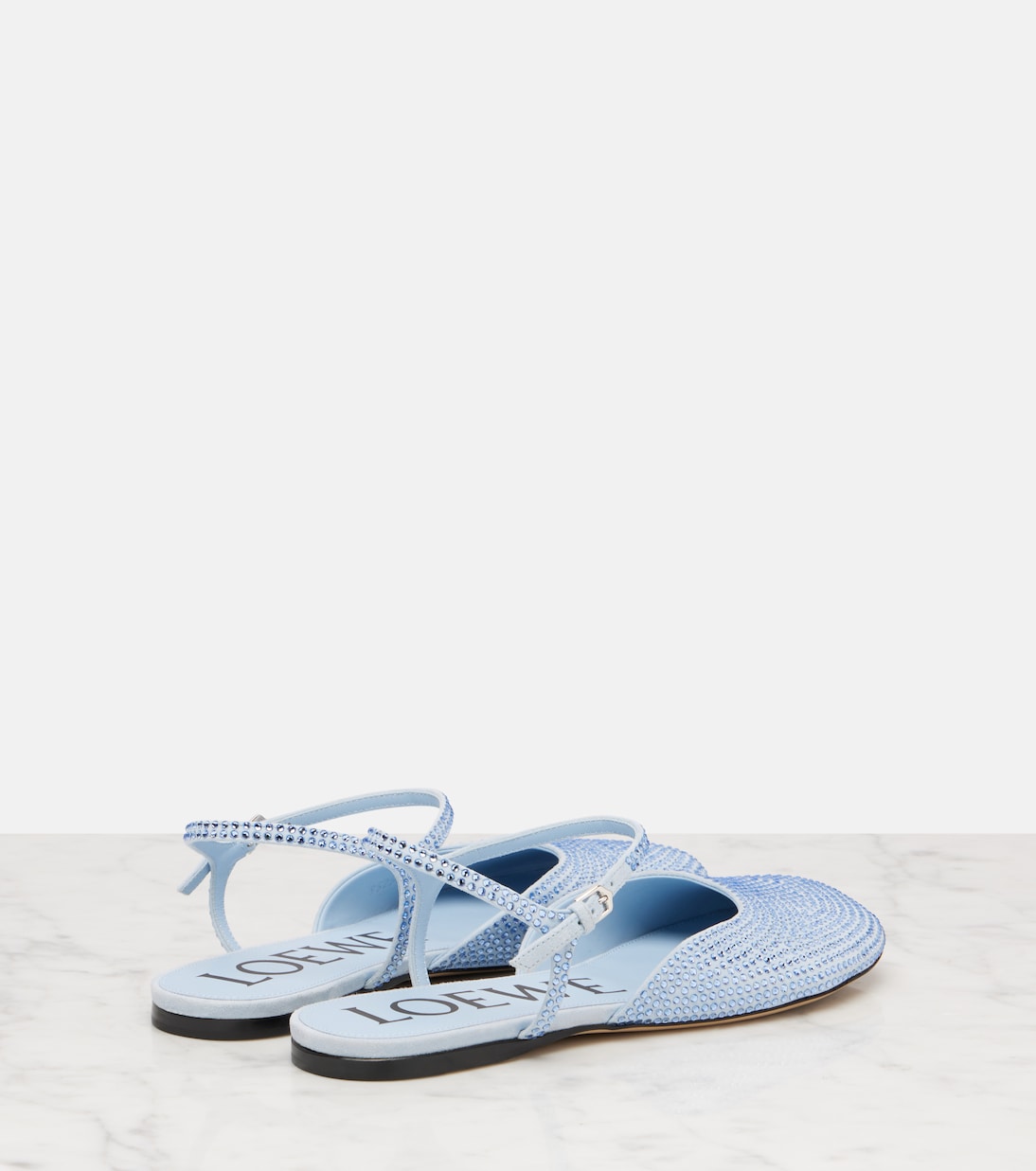 Ботинки Toy от Loewe, выполненные из мягкой нежно-голубой замши, источают гламур. Элегантная пара с регулируемыми застежками на щиколотке и стразами по всей поверхности.