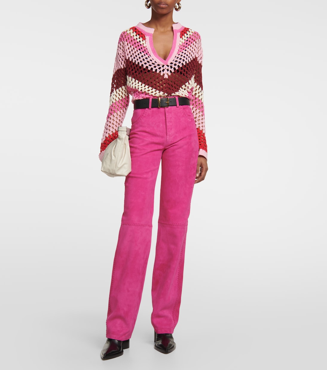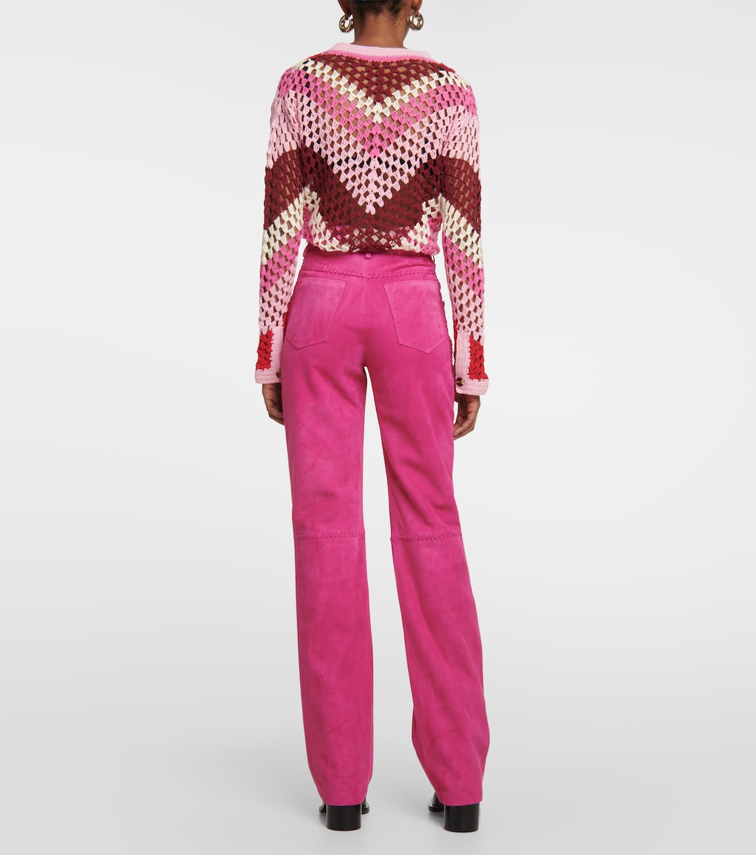 Брюки Kasia от Dodo Bar Or, выполненные из замши цвета фуксии, имеют прямой крой с пятью карманами.
