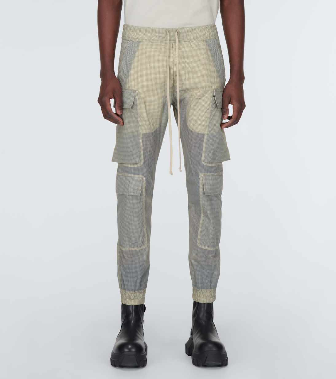 Брюки Mastodon от Rick Owens, произведенные в Италии, представляют собой современный фасон карго с эластичным поясом на шнурке.