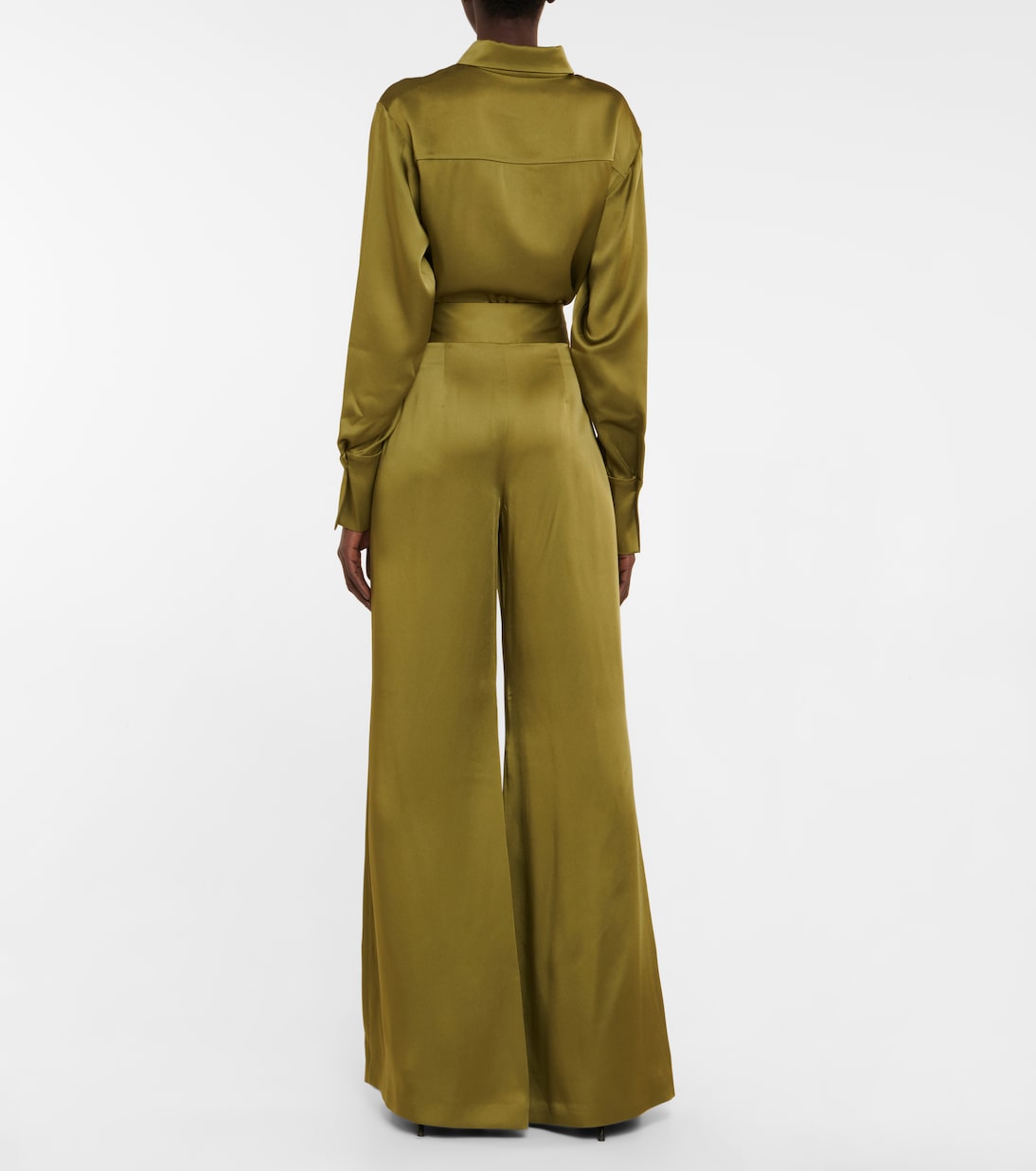 Брюки-палаццо Lido из коллекции Escape от Galvan идеально сочетаются с одноименной рубашкой этого бренда. Эта модель с высокой посадкой, выполненная из блестящего атласа, имеет широкий пояс с привлекательными вытачками.