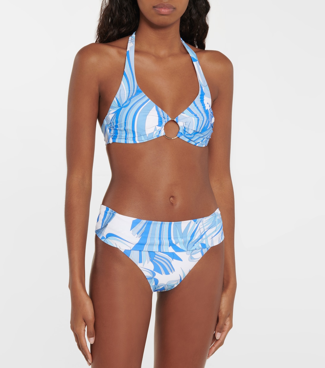 Брюссельский бикини-топ с халтернеем от Мелиссы Одабаш станет прекрасным дополнением к вашему отпускному гардеробу. Модель на косточках с принтом и золотистым кольцом по центру груди обеспечивает комфортную посадку и облегающую посадку. Сочетайте с подходящими плавками бикини.
