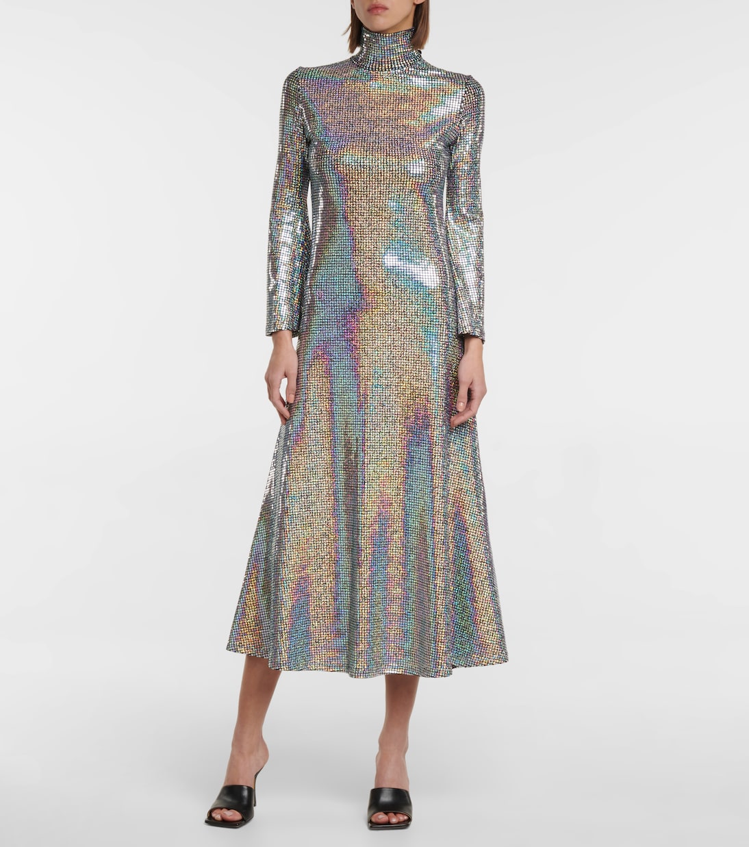 Будьте блистательными на вечерних вечерах в платье миди Amaliya от Dodo Bar Or. Платье имеет слегка расклешенную юбку для удобства движений на танцполе и полностью покрыто переливающимися украшениями.