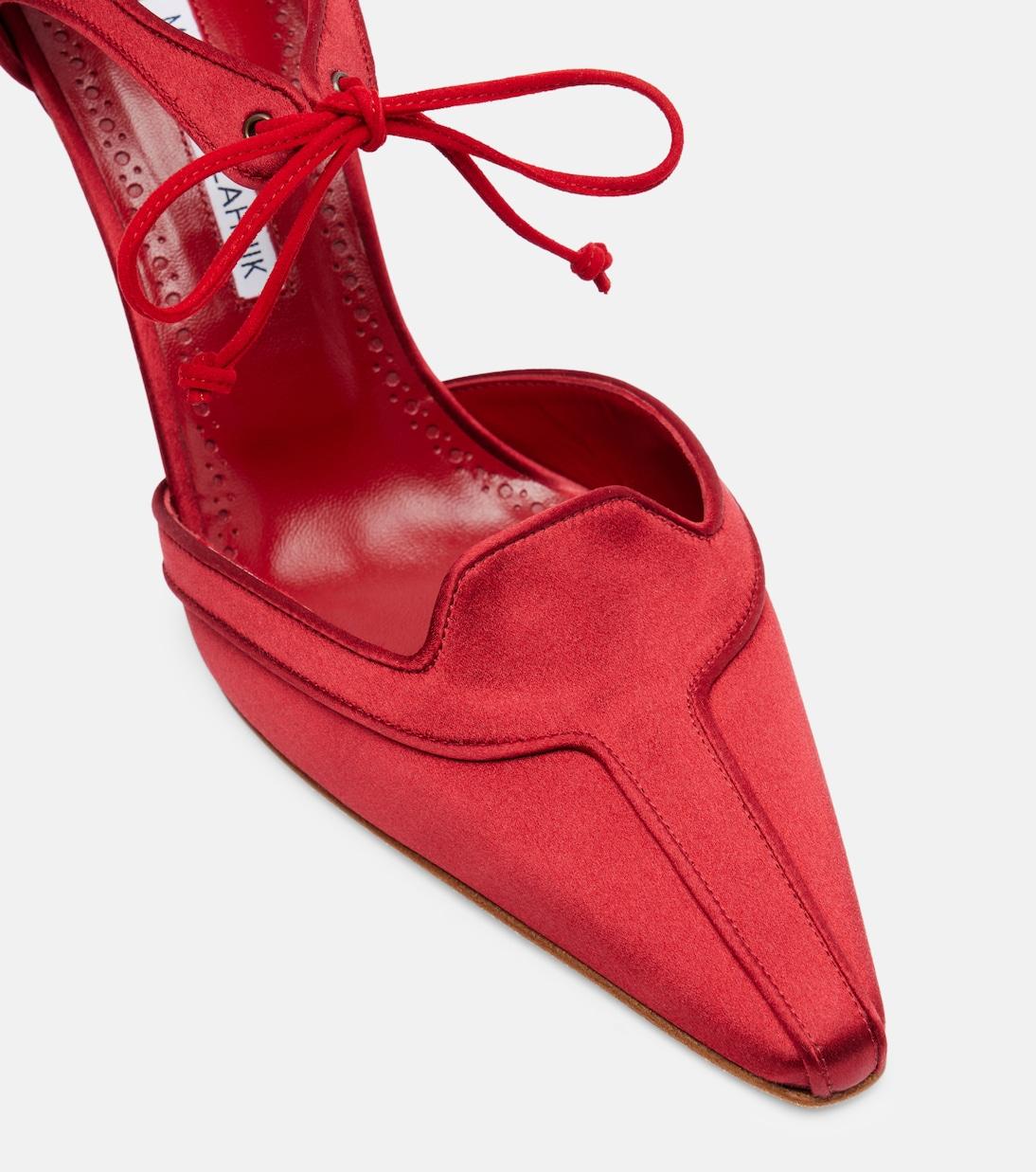 В каждой модели обуви Manolo Blahnik неподвластный времени дизайн сочетается с итальянским мастерством. Эти туфли Orata имеют заостренный нос, атласный верх и завязки вокруг щиколотки.