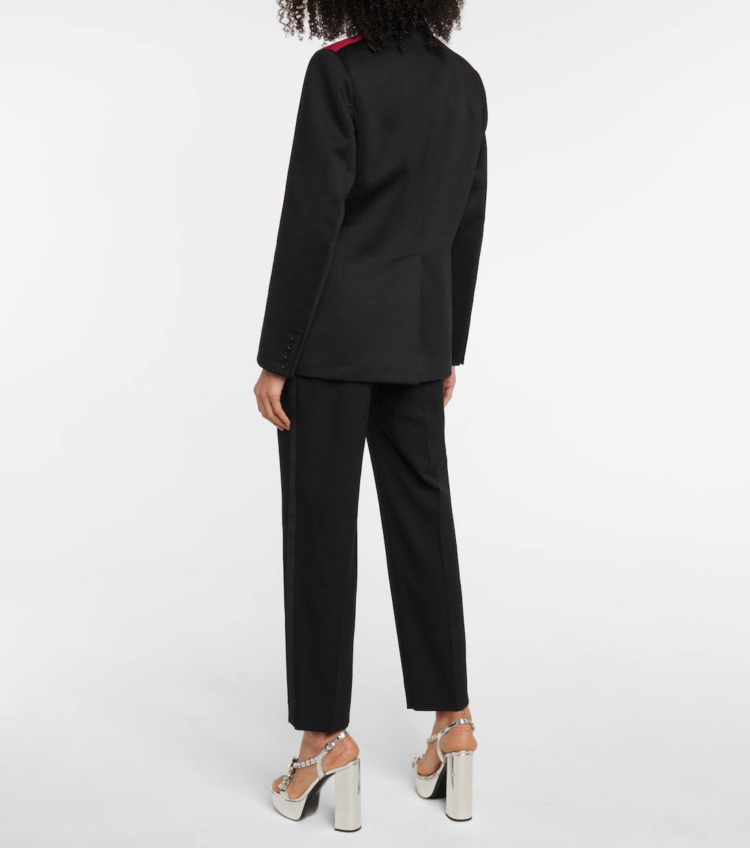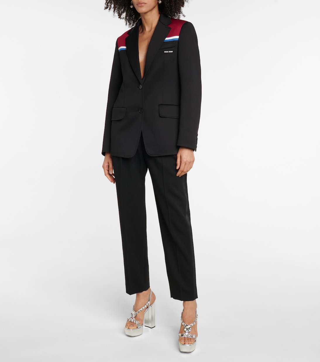 В коллекции весна/лето 2021 года Miu Miu рассматривает базовые элементы молодежного гардероба, например, школьный блейзер. Однобортный жакет из хлопкового флиса на атласной подкладке имеет структурированный силуэт и полосатые вставки на плечах. Возьмите на заметку с показа мод и стильно наденьте мини-юбку.