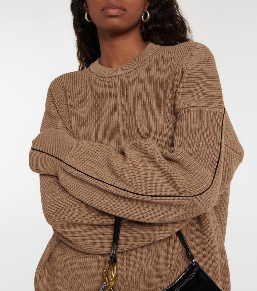 В моделях Питера До часто присутствует контрастная полоса вдоль одного рукава - фирменный акцент, вдохновленный татуировкой дизайнера. Этот свободный свитер выполнен из хлопка с использованием различных техник стежка.