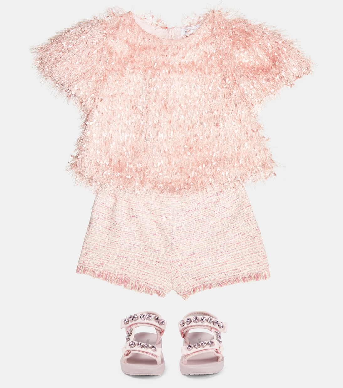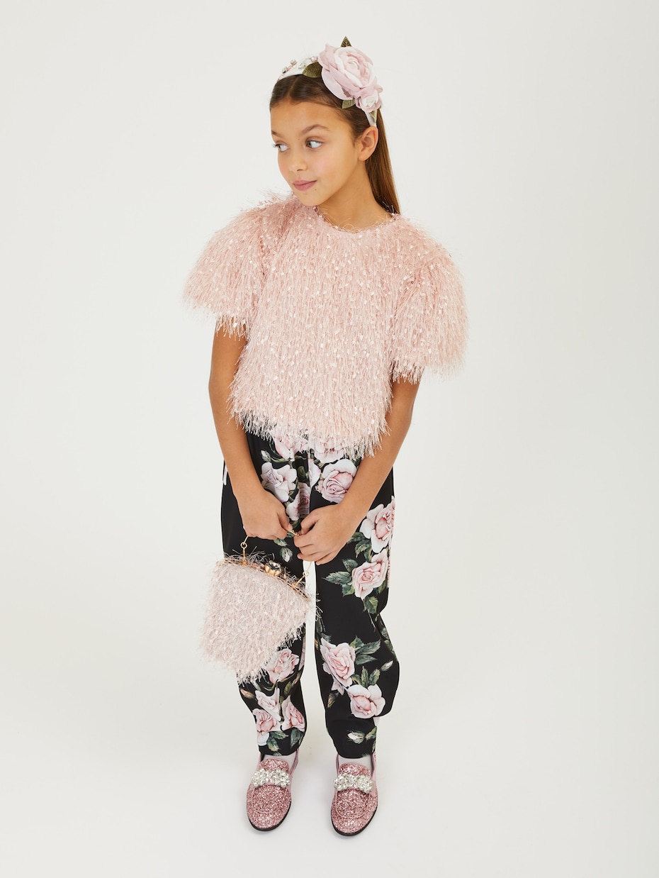 Ваш малыш захочет носить этот топ Monnalisa снова и снова. Этот укороченный топ пыльно-розового цвета полностью покрыт нежной бахромой.
