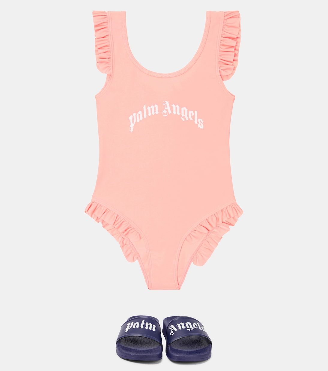 Ваш малыш произведет фурор в этом розовом купальнике от Palm Angels Kids, отделанном оборками и украшенном логотипом.