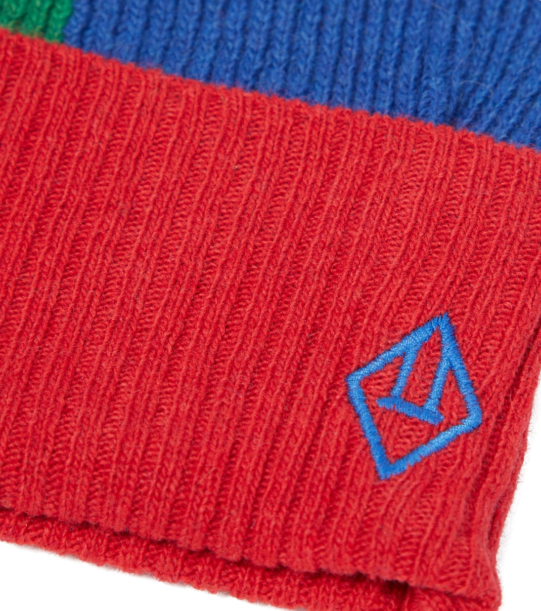 Ваш малыш с удовольствием наряжается в зимнюю шапочку Pony от The Animals Observatory. Она связана из теплой пряжи из смеси шерсти и кашемира и украшена ярким полосатым узором.
