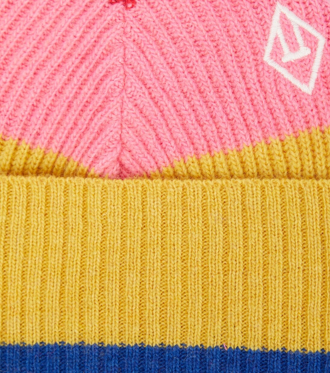 Ваш малыш с удовольствием наряжается в зимнюю шапочку Pony от The Animals Observatory. Она связана из теплой пряжи из смеси шерсти и кашемира и украшена ярким полосатым узором.