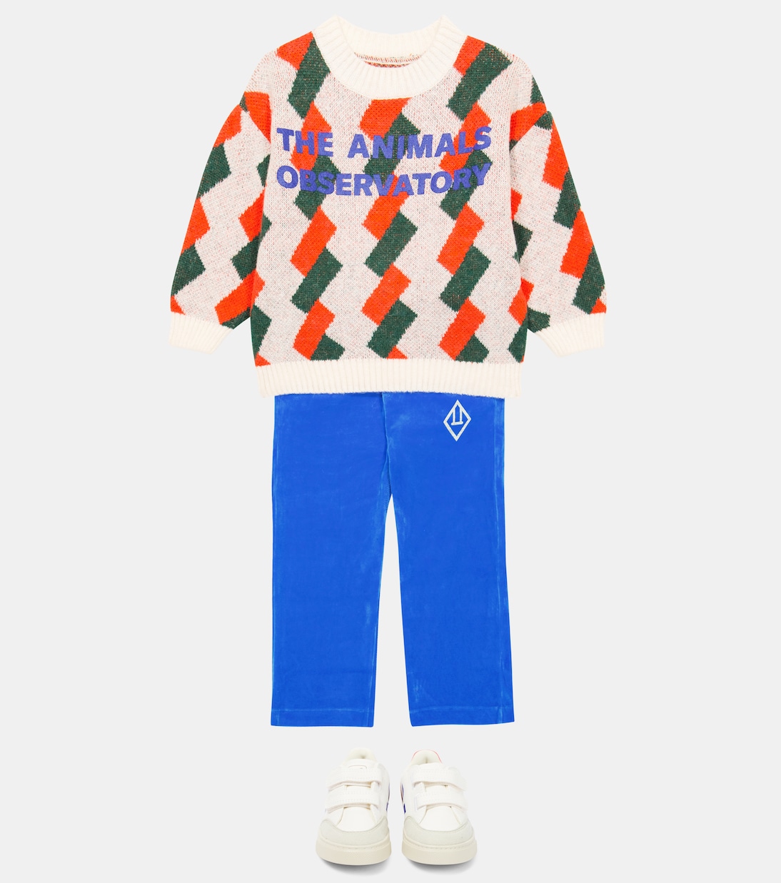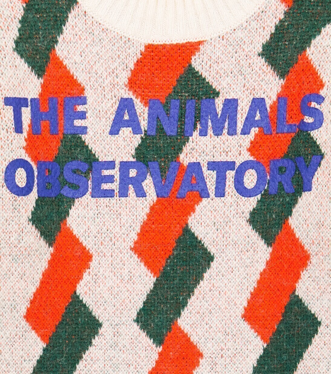 Вдохновитесь своими повседневными вещами в эклектичные модели из The Animal's Observatory, например, свитер Arty Bull. Он выполнен из шерстяной смеси и украшен зелено-красным геометрическим узором в технике интарсии.