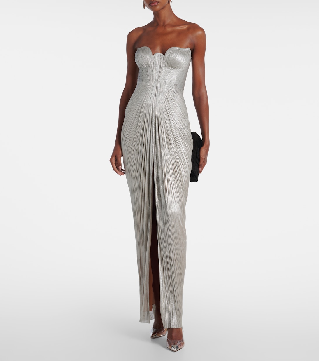 Вдохновленное динамичной красотой водопадов, корсетное платье Jasleen от Maria Lucia Hohan имеет корсетный лиф и драпированную юбку. Изделие выполнено из металлизированного шелкового тюля с текстурированной поверхностью.