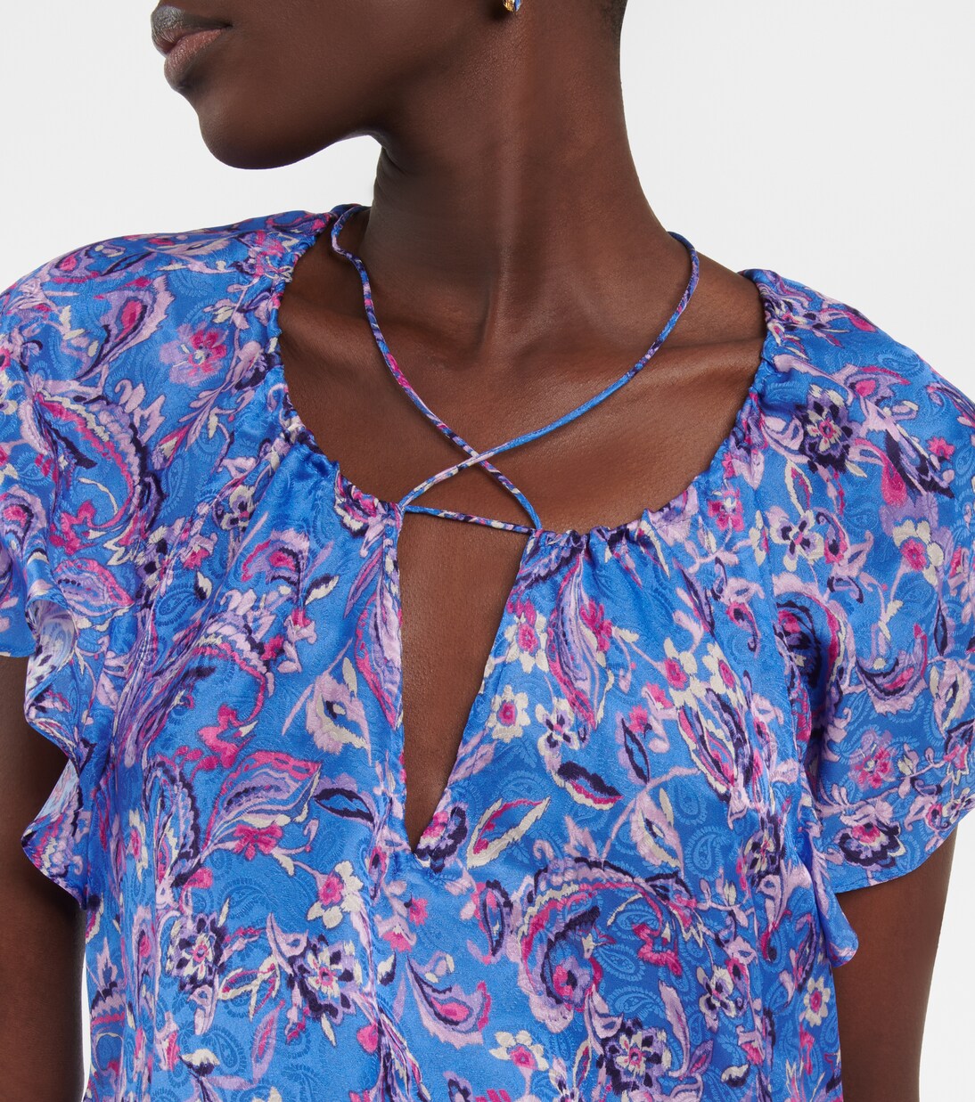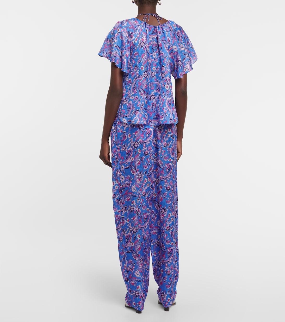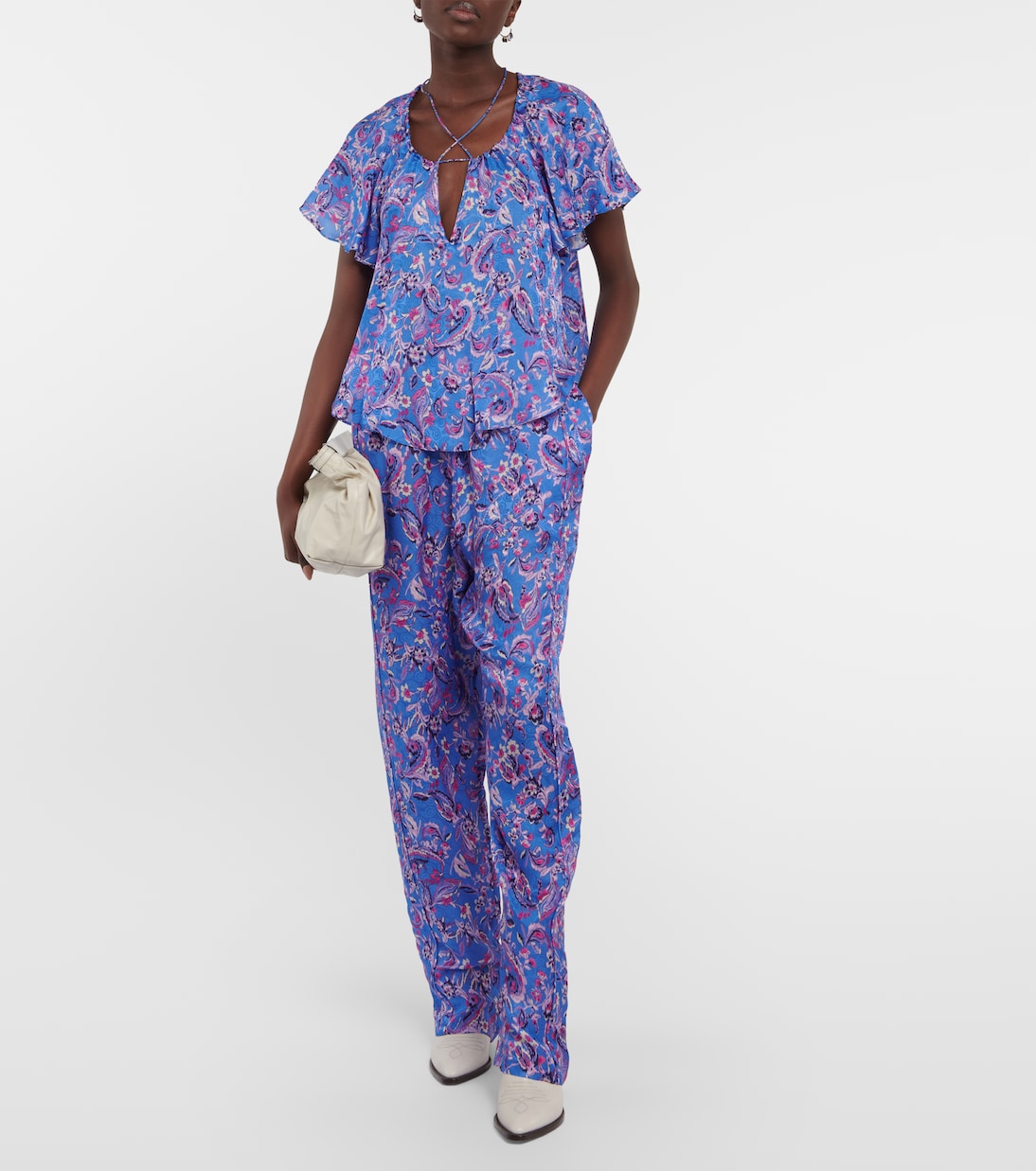 Весенний вариант для теплых дней: топ Penelope от Isabel Marant выполнен из струящейся смеси вискозы и шелка. Напечатанный яркий рисунок, завязки спереди и рукава-крылышки.