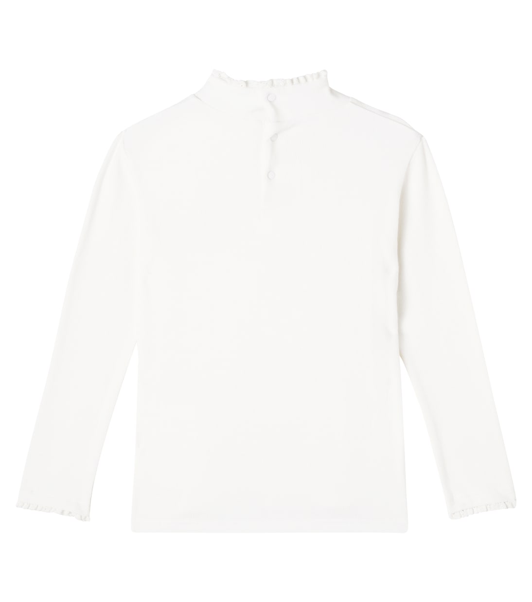 Вечная детская одежда Tartine et Chocolat изготовлена из лучших материалов с безупречным вниманием к деталям. Этот топ, сшитый из джерси с добавлением хлопка в рубчик и немного эластичного материала, украшен изящной рюшами.