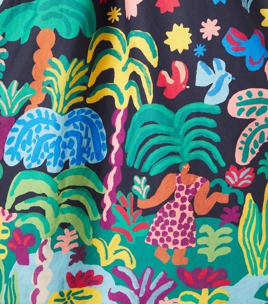 Вещи Fábula тщательно продуманы и полны той же яркости и радости, что и ее старший сестринский бренд Farm Rio. Это платье из чистого, приятного для кожи хлопка украшено очаровательным красочным принтом и регулируемыми завязывающимися рукавами.