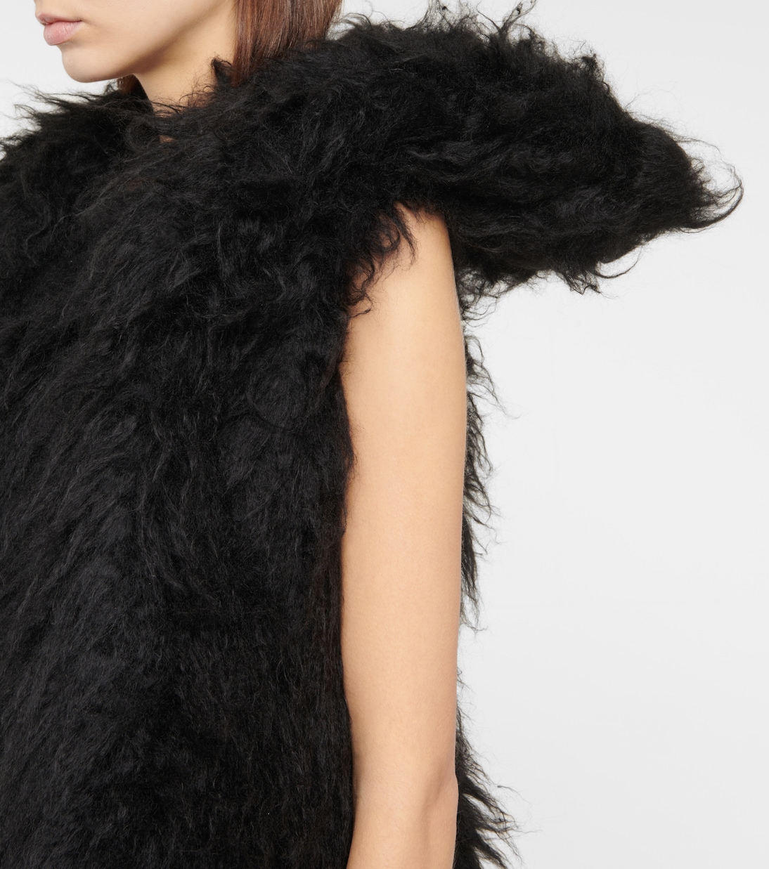 Взгляните по-новому на маленькое черное платье с мини-платьем Norine от Ann Demeulemeester. Изготовлено из приятного на ощупь искусственного меха, без бретелек и с асимметричным вырезом.