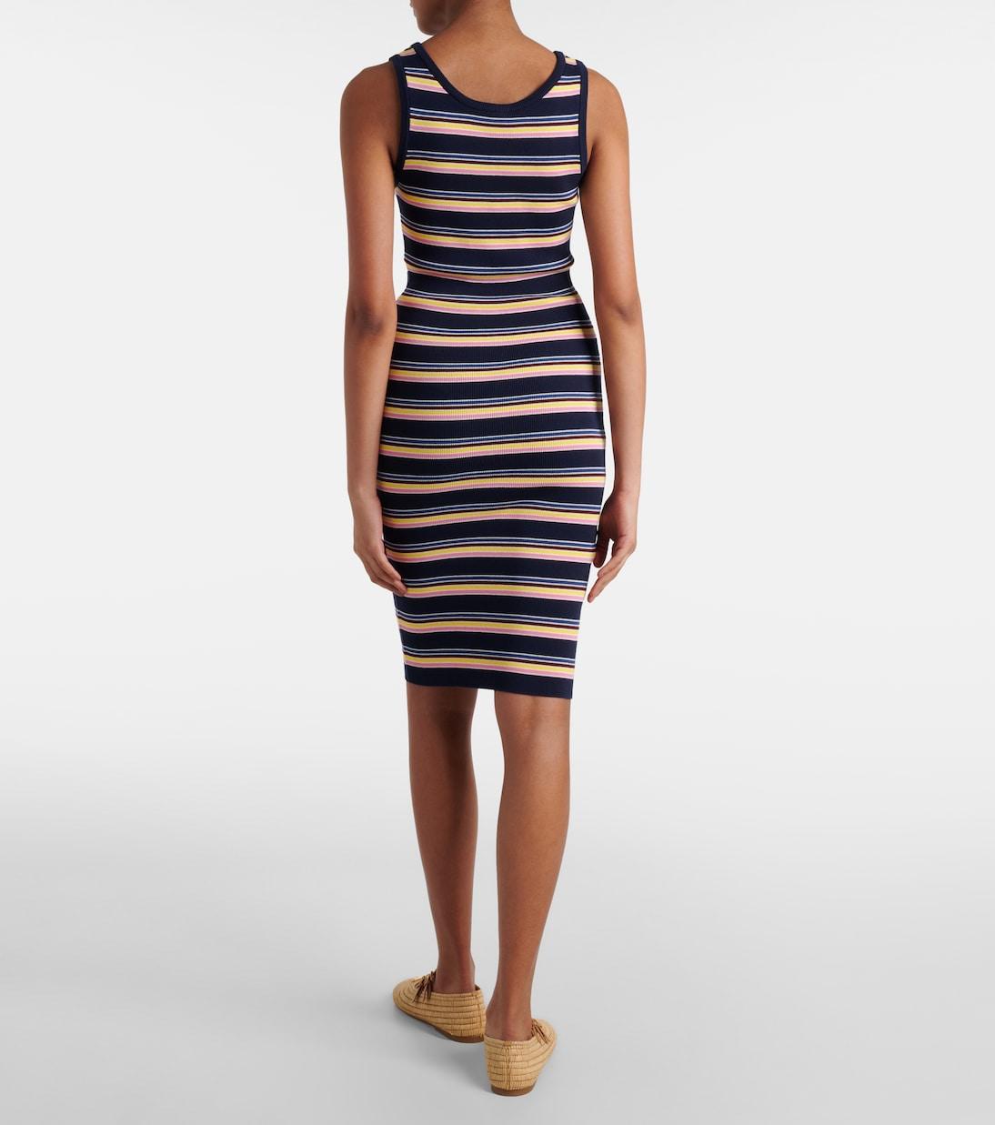 Возьмите с собой это миди-платье от Prada для вашего следующего путешествия в теплую погоду. Платье облегает фигуру, связано из хлопка с разноцветным полосатым узором и украшено логотипом бренда спереди.
