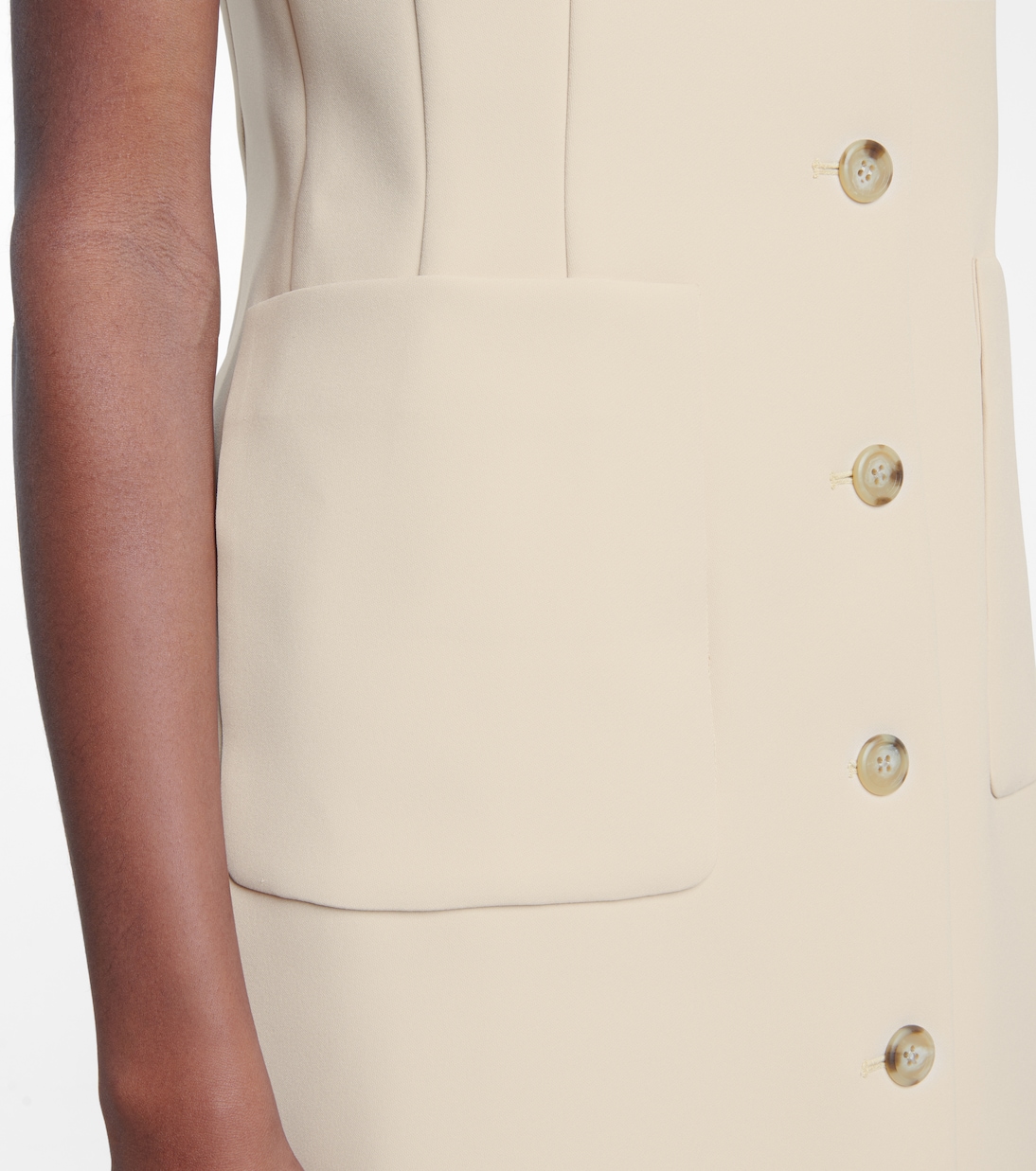Воплощайте элегантность в стиле апарт-отеля с платьем миди Alicia от Deveaux New York. Это платье без рукавов песочно-бежевого цвета сшито в родном для бренда США из двухслойного кади и отличается застежкой на пуговицы спереди и большими накладными карманами. Универсальная вещь, это гораздо больше, чем просто платье - попробуйте носить его расстегнутым как легкий вариант верхней одежды.