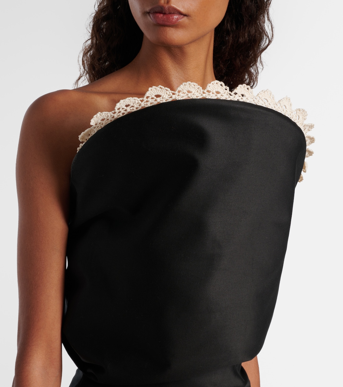 Все изделия Магды Бутрым, связанные крючком, изготавливаются вручную в Польше командой опытных мастеров. Это платье миди из хлопка с лифом с внутренними косточками и утягивающей талией для скульптурного образа.