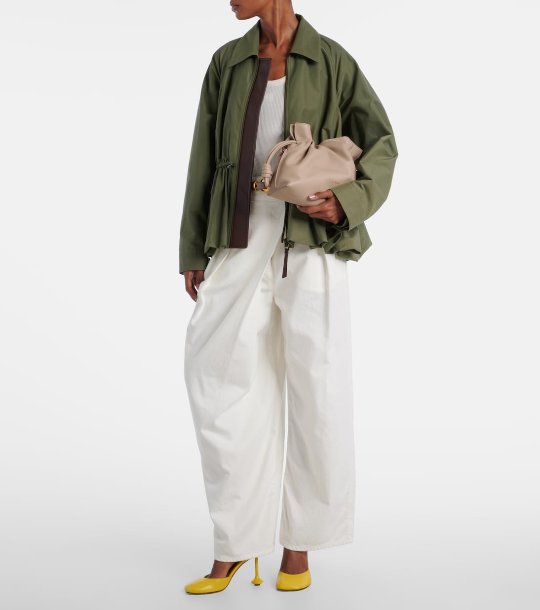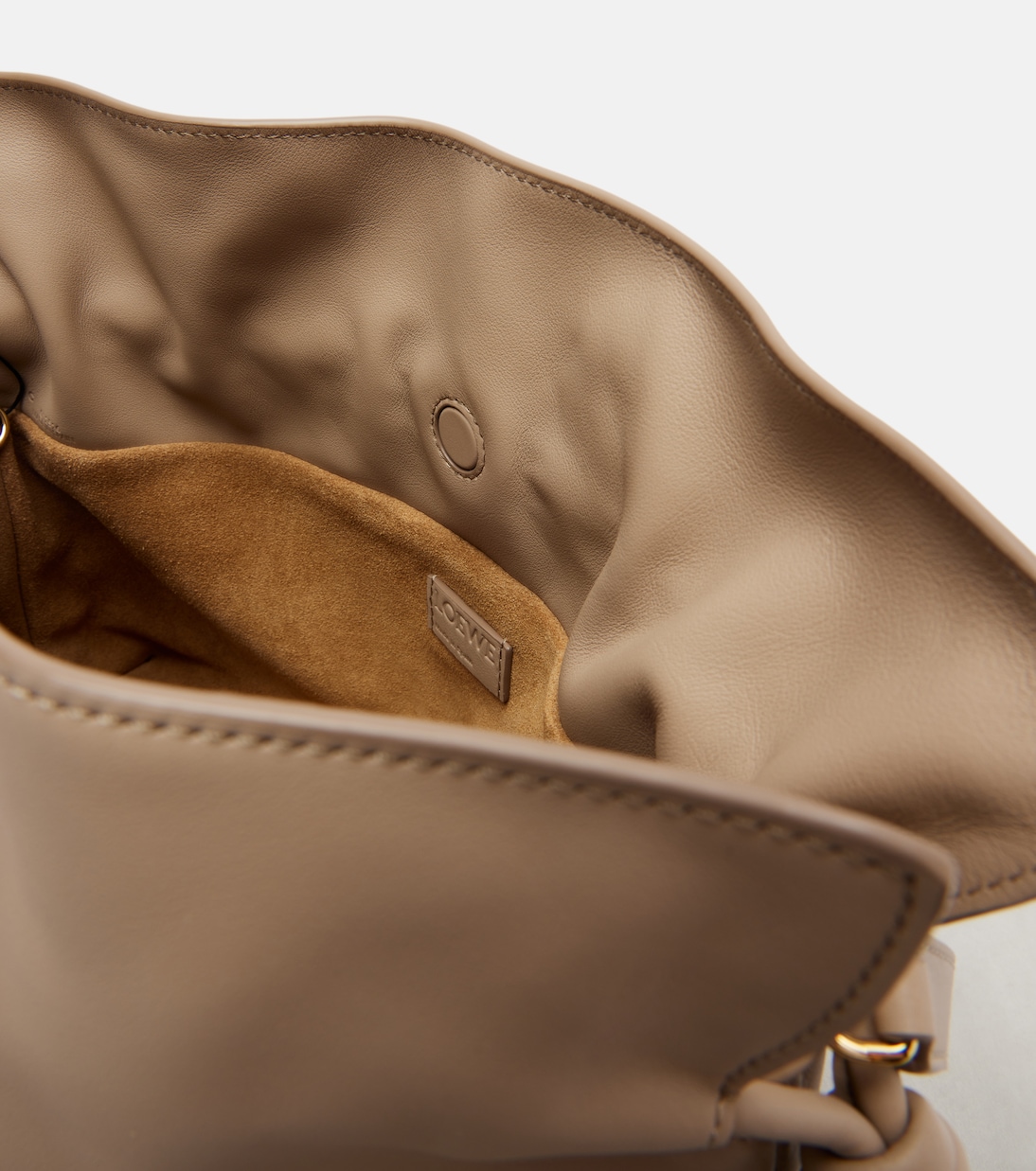 Все кожаные изделия Loewe изготавливаются вручную в Испании, что отражает многовековой опыт и ремесленные методы дома. Сумка-тоут Flamenco из бежевой кожи с мягкой замшевой подкладкой представлена в средних размерах.