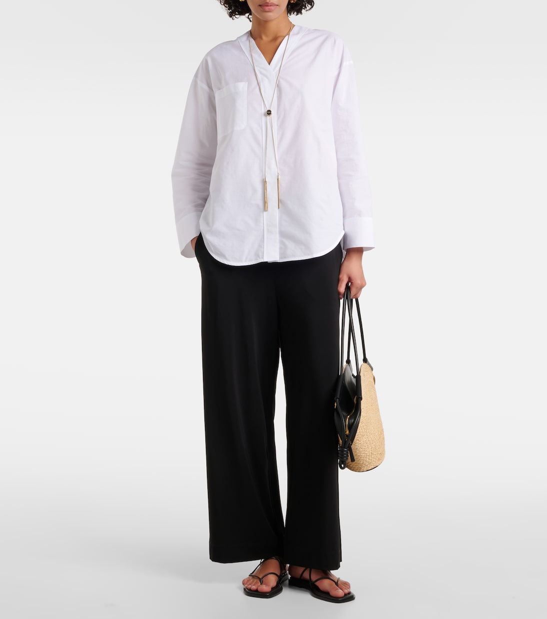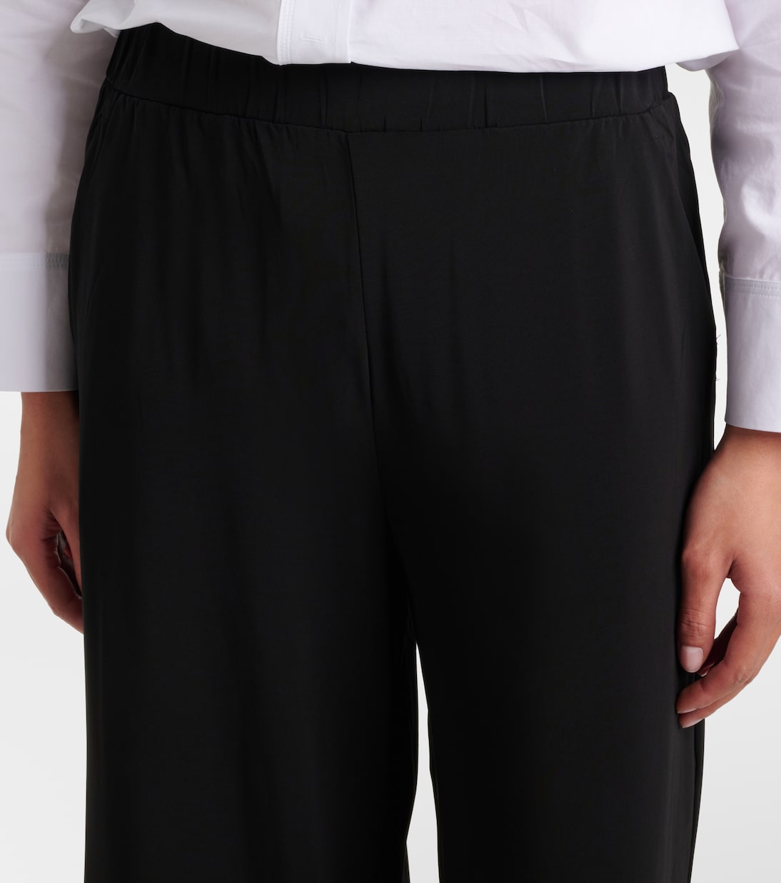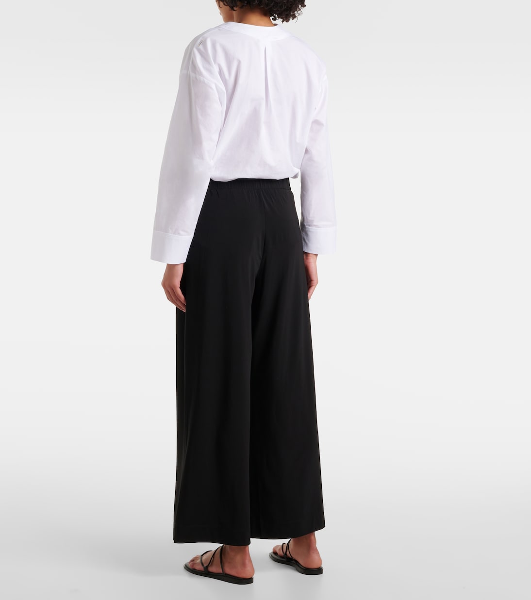 Выбирайте базовые вещи гардероба, которые сочетают в себе универсальность и безупречный дизайн, включая брюки Savio от Max Mara. Высокая посадка и струящиеся широкие брючины.