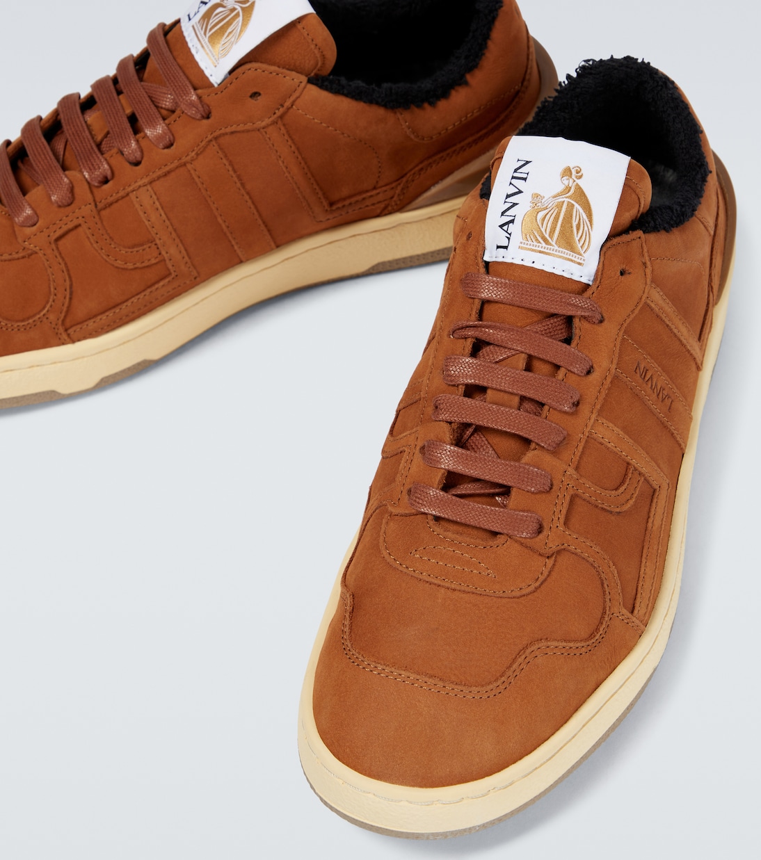Выведите свою обувь на новый уровень с низкими кроссовками Clay от Lanvin. Босоножки отделаны бахромой на щиколотках и выполнены из замшевых панелей с вырезанными монограммами JL в честь основателя бренда.