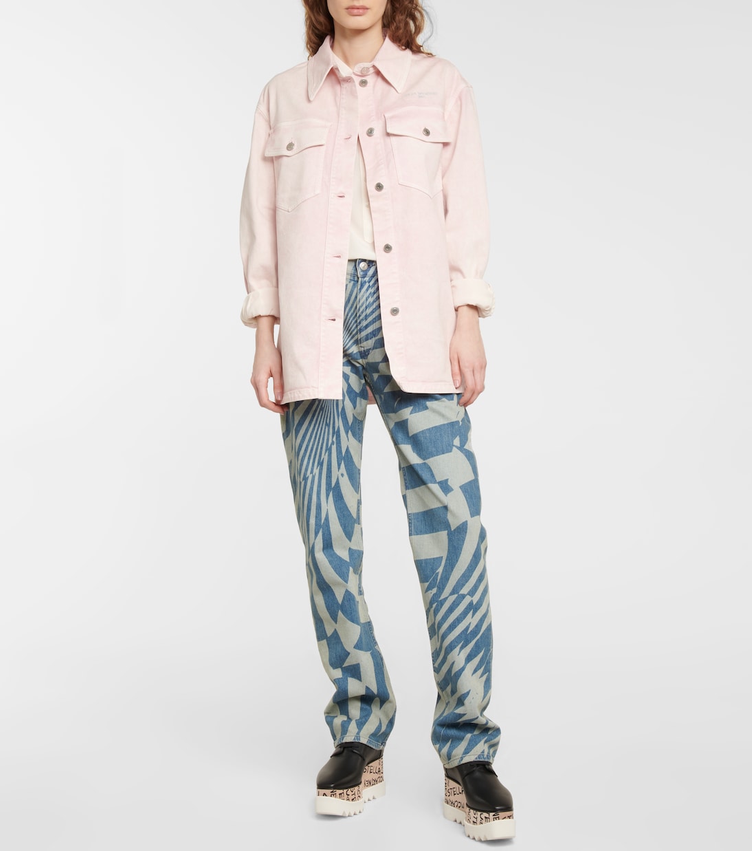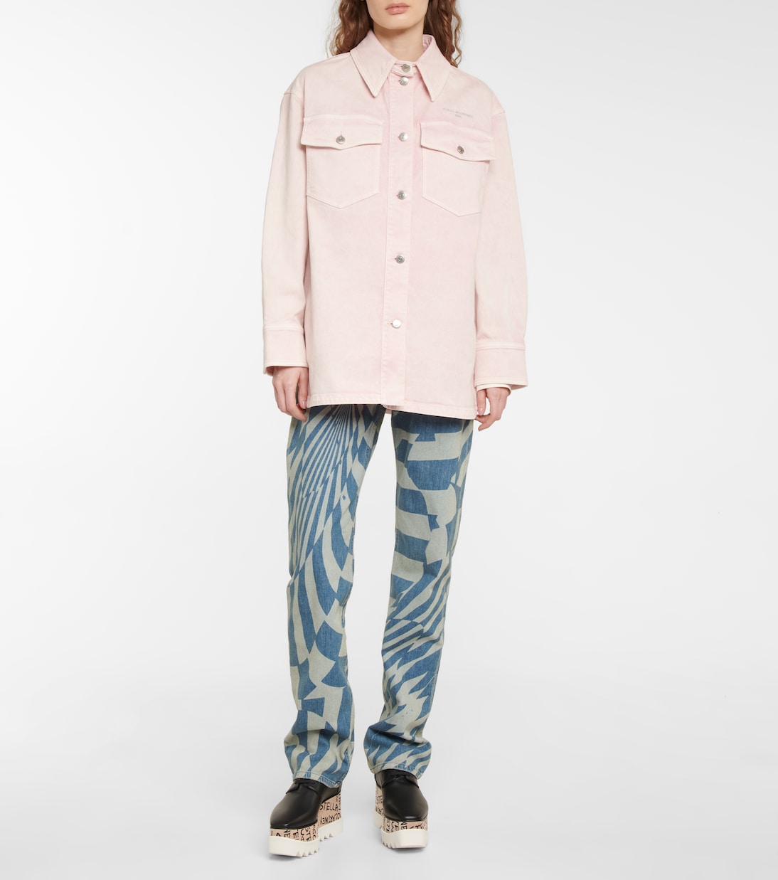 Выглядите стильно и непринужденно в этой свободной джинсовой куртке от Stella McCartney. Выцветшая ткань создает эффект потертости, а также вышитый металлический логотип над нагрудным карманом и пуговицы с логотипом.
