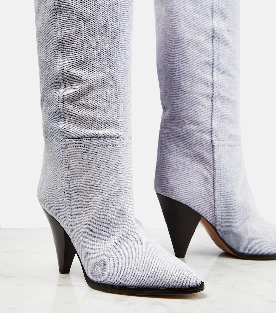 Высокие сапоги Ririo от Isabel Marant - одновременно повседневные и изысканные. Сделанные из денима для современного образа, эти свободные туфли имеют заостренный нос и конический каблук.
