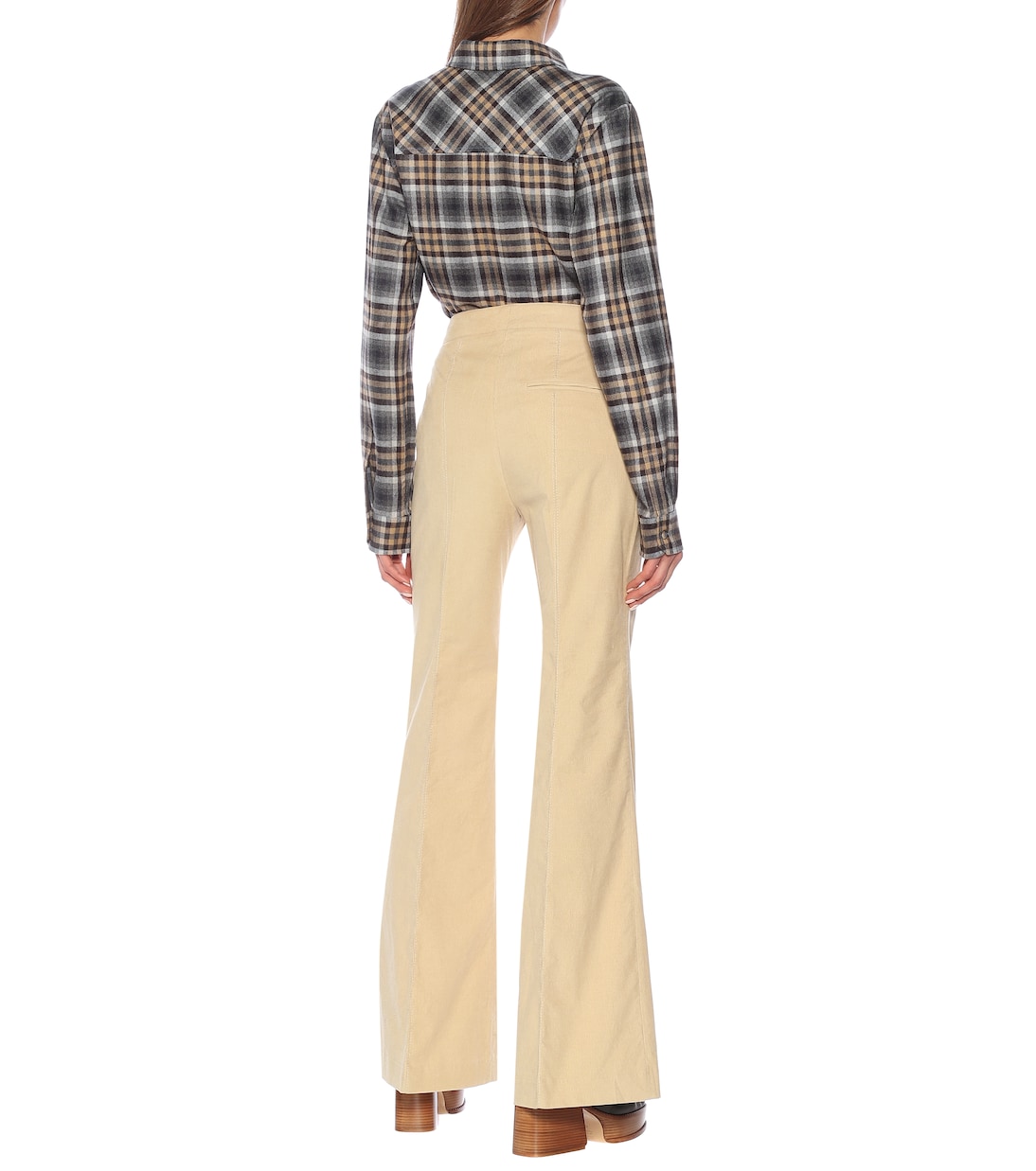 Габриэла Херст переосмысливает ностальгические строгие дресс-коды для современной женщины, создавая эти бежевые брюки. Они изготовлены в Италии из хлопкового твила и имеют высокую посадку и узкие брючины, расширяющиеся к низу колена. Блестящая атласная подкладка мягко прилегает к коже.
