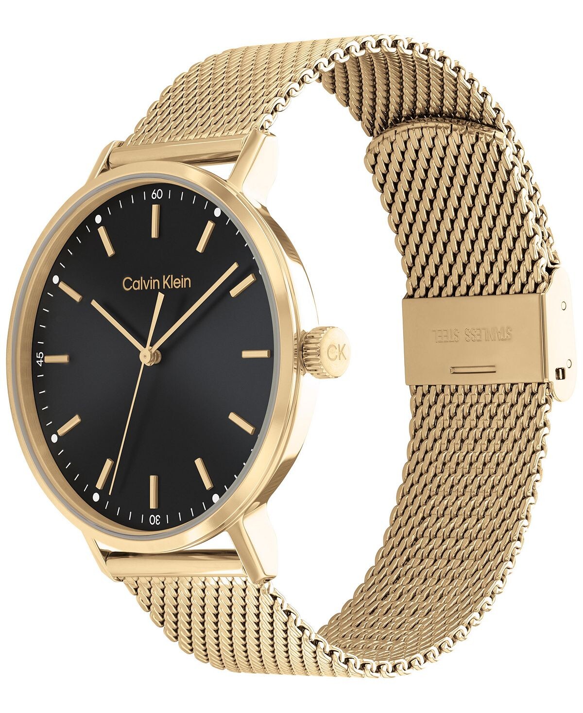 Свежие и современные часы Calvin Klein золотистого цвета с гибким сетчатым браслетом.