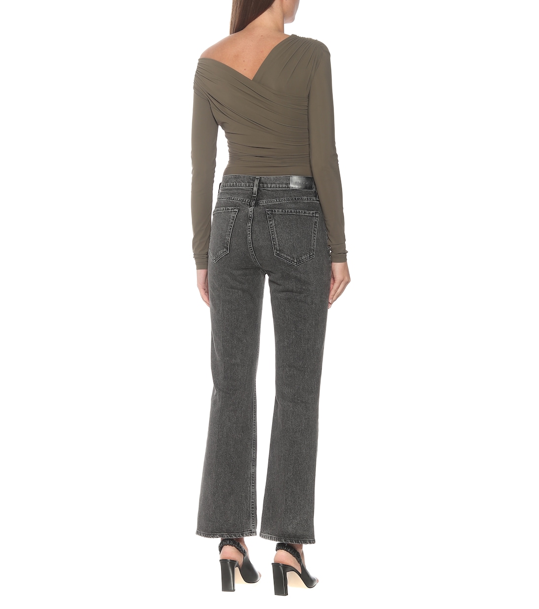 Джинсы Comfort от Goldsign, созданные по мотивам винтажных силуэтов, имеют высокую посадку, прямой крой и слегка расширяются от колен. Эта выцветшая черная пара имеет заутюженные складки спереди, которые придают ее форме нотку строгости.