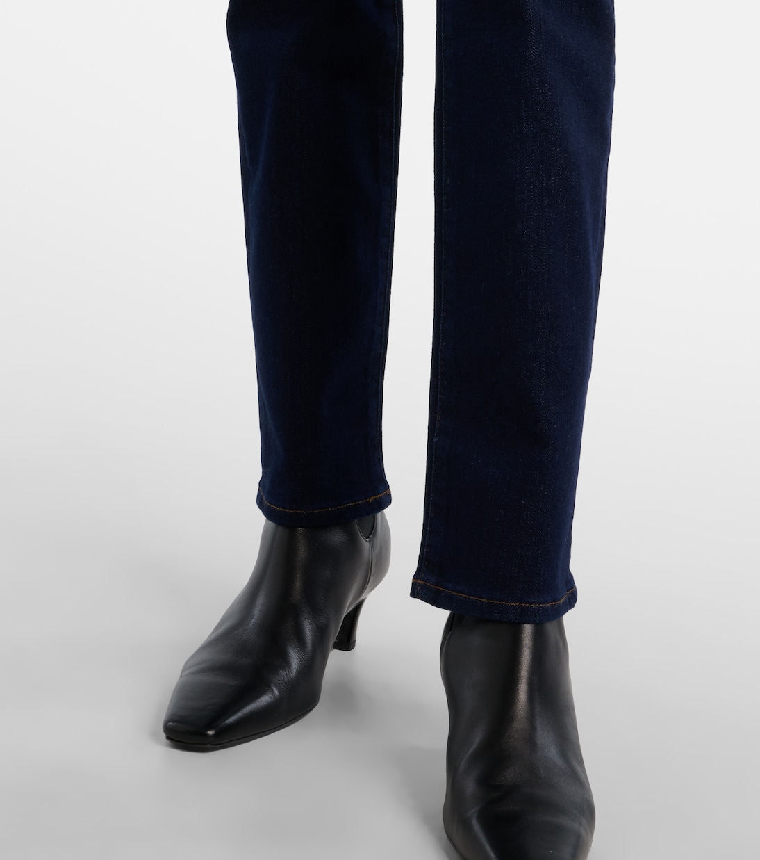 Джинсы-карандаш от Frame облегают бедра и ягодицы, переходя в длинные узкие штанины. Эта джинсовая вещь с высокой талией легко сочетает в себе современный комфорт и винтажный шарм.