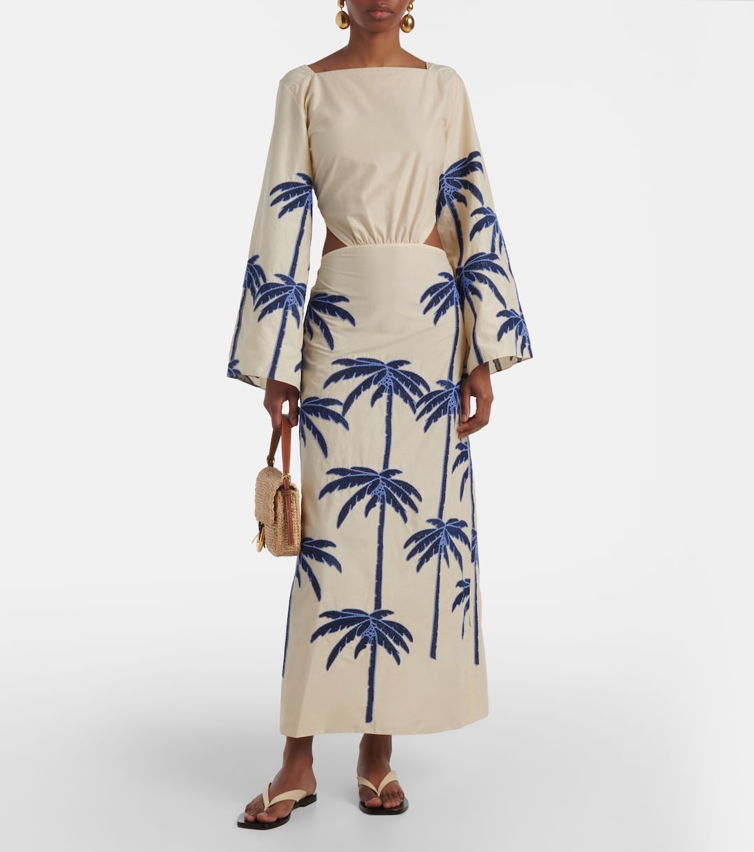 Джоанна Ортис основала одноименный бренд в своем родном городе Кали, Колумбия, чтобы отдать дань уважения его уникальной и красочной душе. Платье миди Journey выполнено из смесовой хлопковой ткани, имеет едва заметные вырезы по бокам и искусно расшито фирменным пальмовым мотивом бренда.