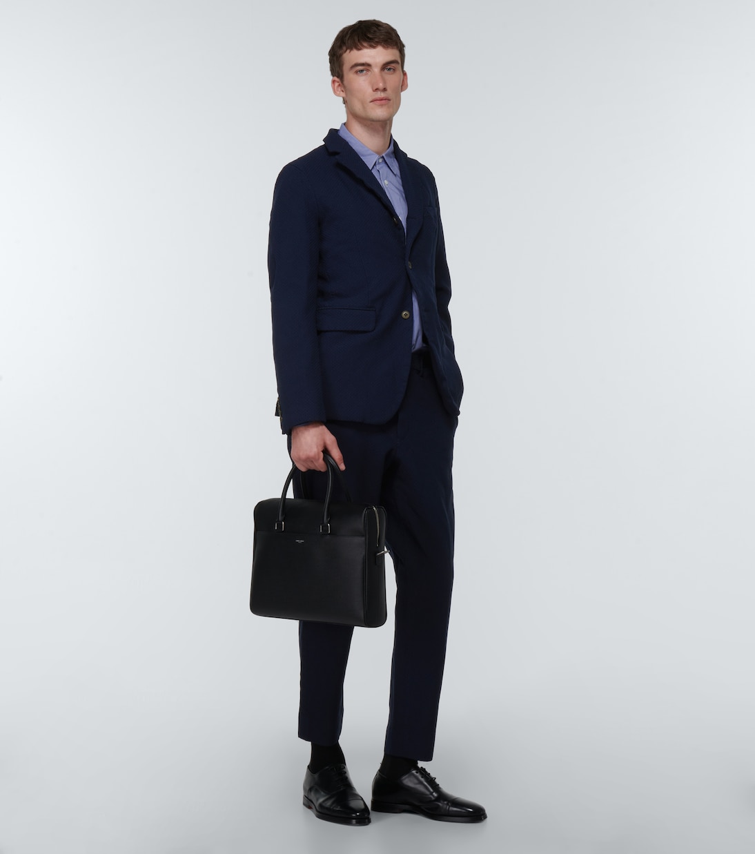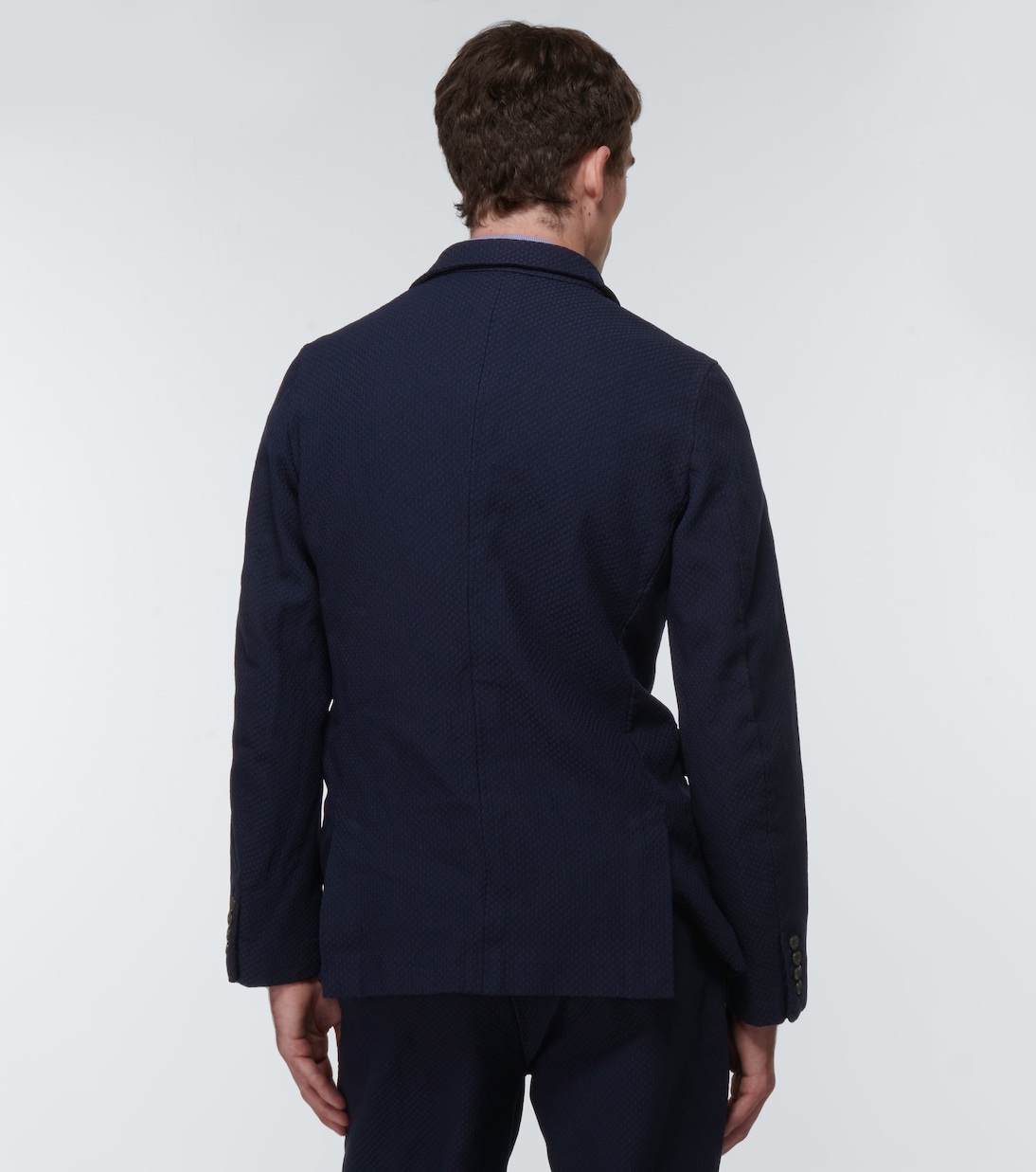 Для повседневной пятницы выбирайте этот однобортный пиджак от Comme des Garçons Homme Deux. Темно-синий фасон частично на подкладке с отложным воротником, карманами с клапанами и прорезным карманом на груди.