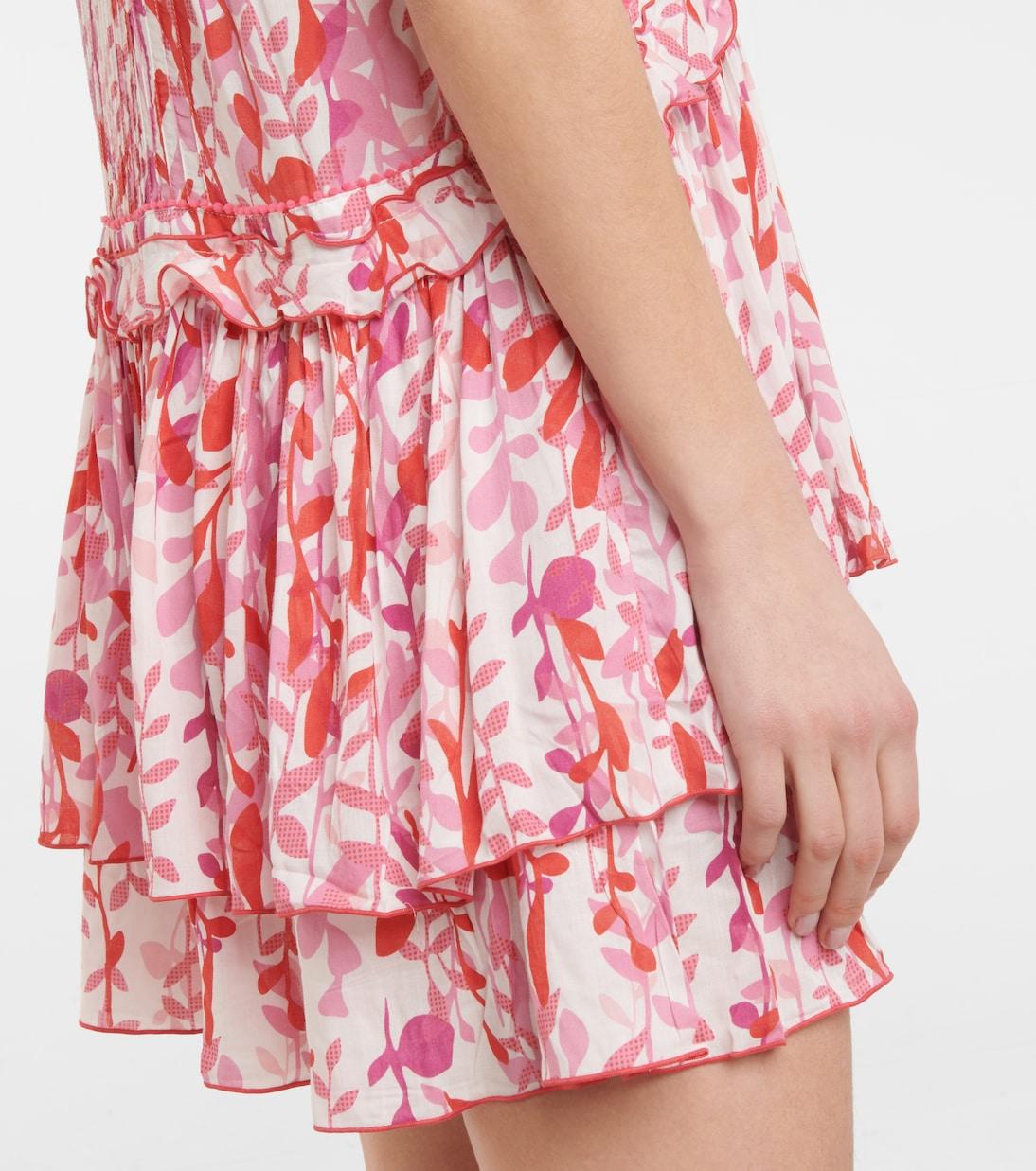 Для создания романтического летнего образа обратите внимание на мини-платье Mae от Poupette St Barth с цветочным принтом. Платье имеет трапециевидный силуэт и спинку-борцовку, дополнено оборками, окантовкой и фестончатыми краями, многоярусной юбкой и пуговицами с помпонами.