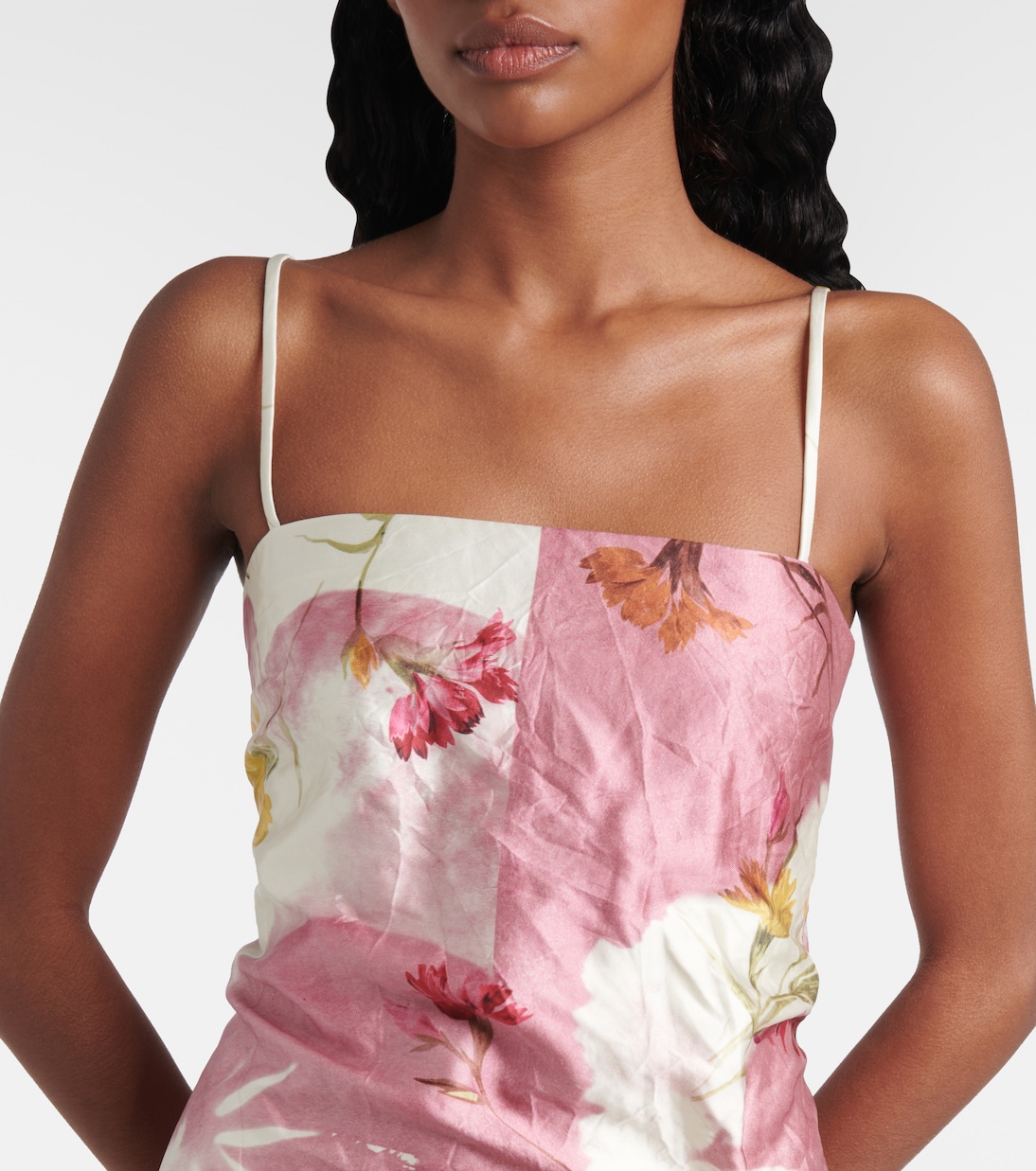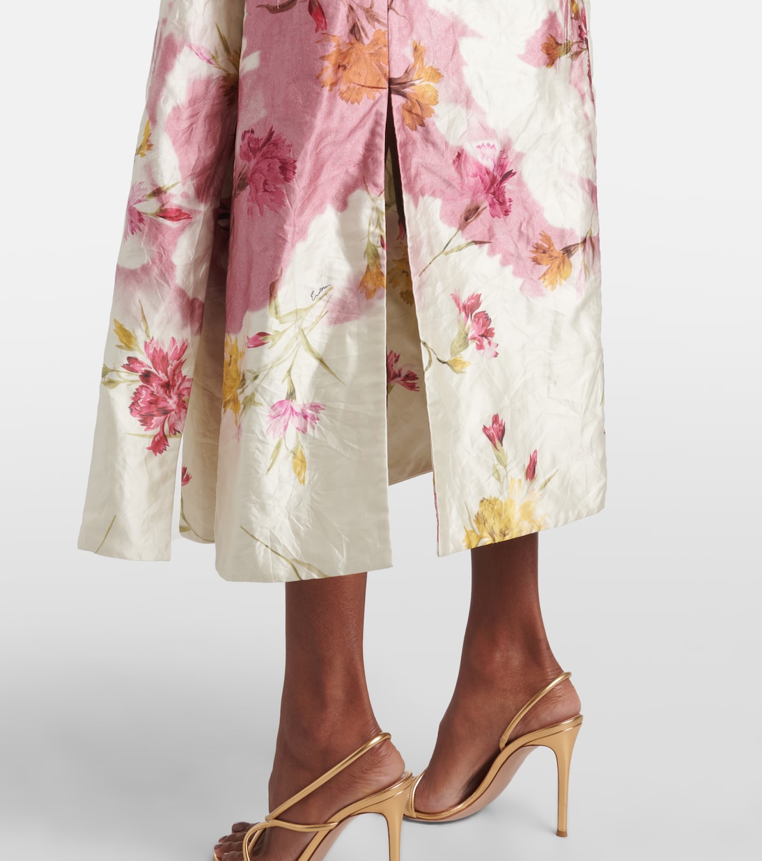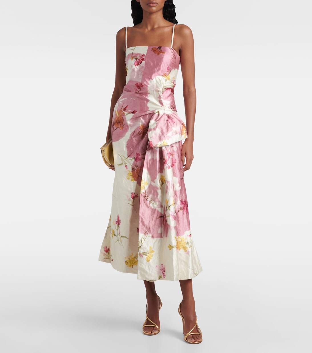 Добавьте в свой гардероб нотку современной романтики с помощью причудливых и изящных дизайнов Erdem. Это платье миди с цветочным принтом отличается элегантной присборенной талией, тонкими бретельками и струящимся силуэтом, дополненным невидимой застежкой-молнией.