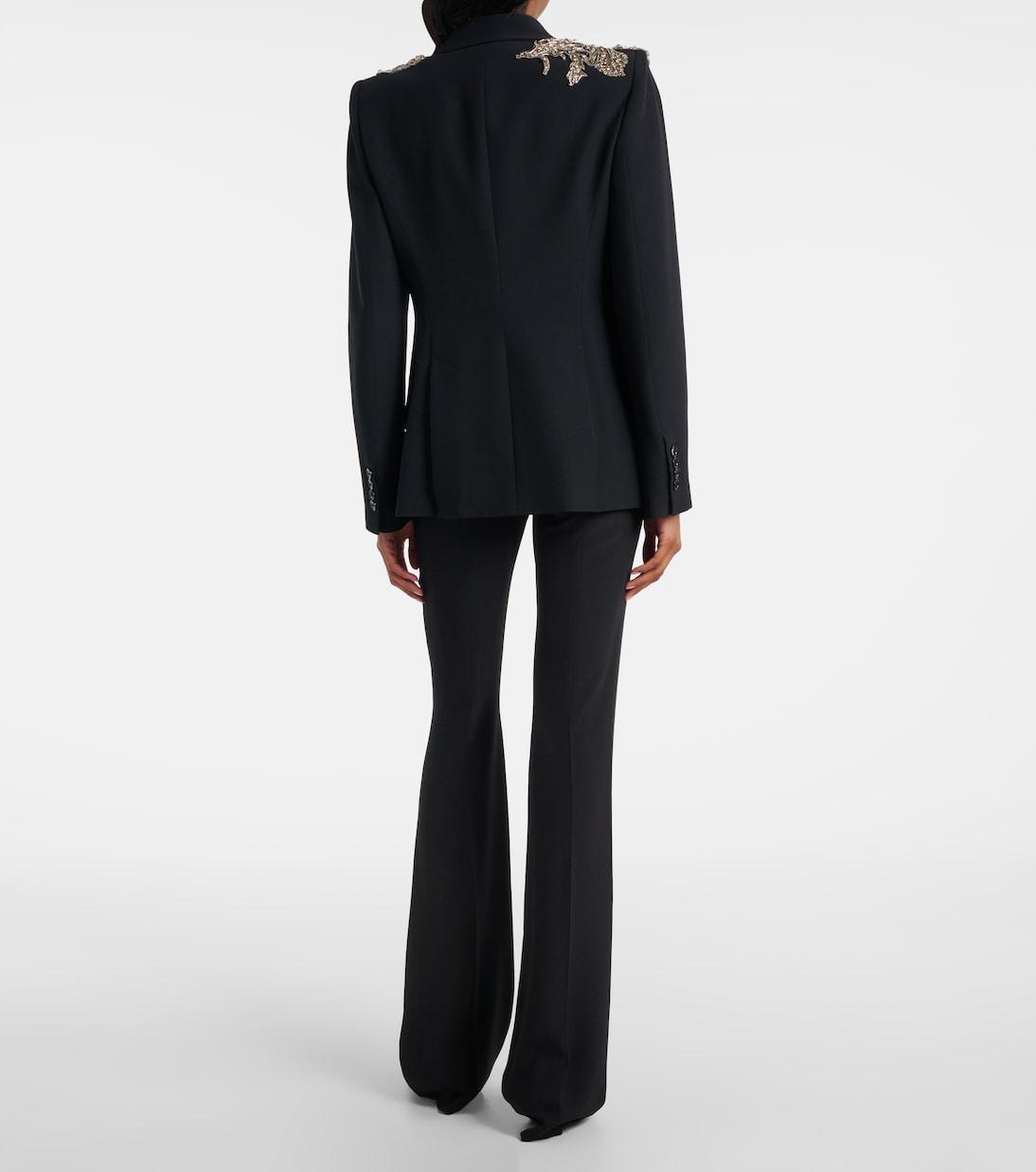 Добавьте изысканного гламура любому ансамблю с этим блейзером от McQueen. Изготовленный из черного лиственного крепа с отворотами на плечах и боковыми карманами с клапанами, дизайн отличается замысловатыми украшениями, которые элегантно облегают плечи.