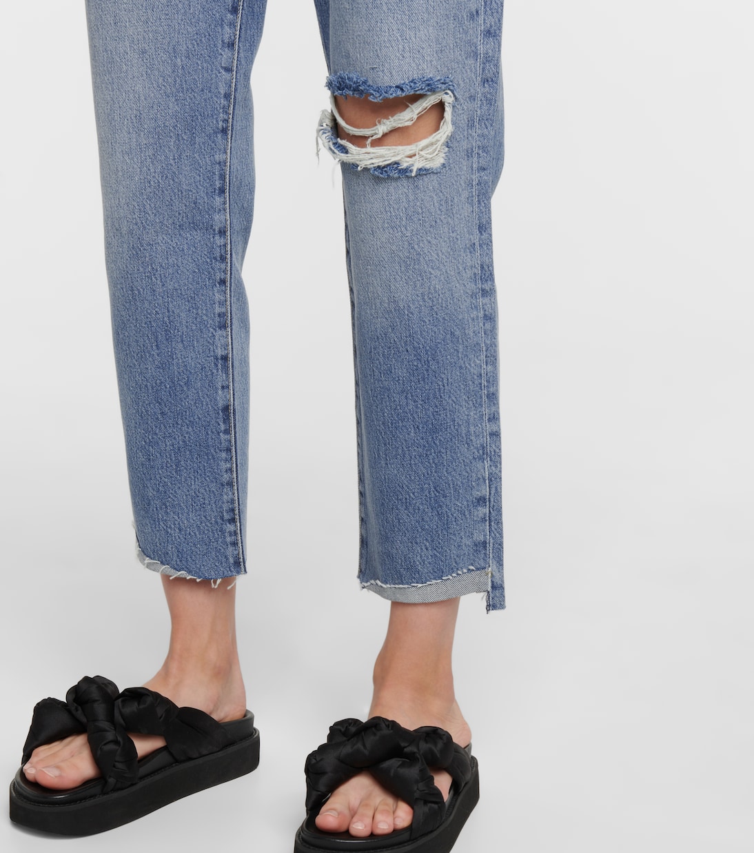 Добавьте изюминку как повседневным, так и вечерним образам с синими джинсами Le Original от FRAME. Джинсы, изготовленные в США из потертого денима с рваными краями и потертостями, имеют высокую посадку и прямые, узкие штанины. Просто наденьте их с кроссовками или дополните блузкой и сандалиями.