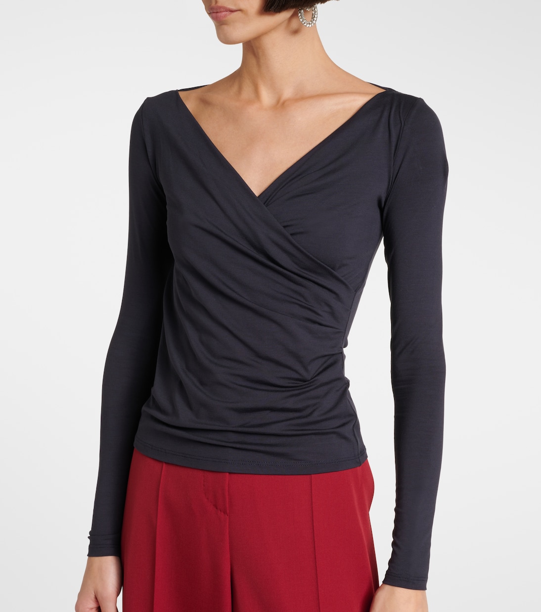 Добавьте итальянской утонченности в свой гардероб с топом Yale от Max Mara. Модель с V-образным вырезом дополнена асимметричными сборками по бокам для создания элегантной и непринужденной посадки.