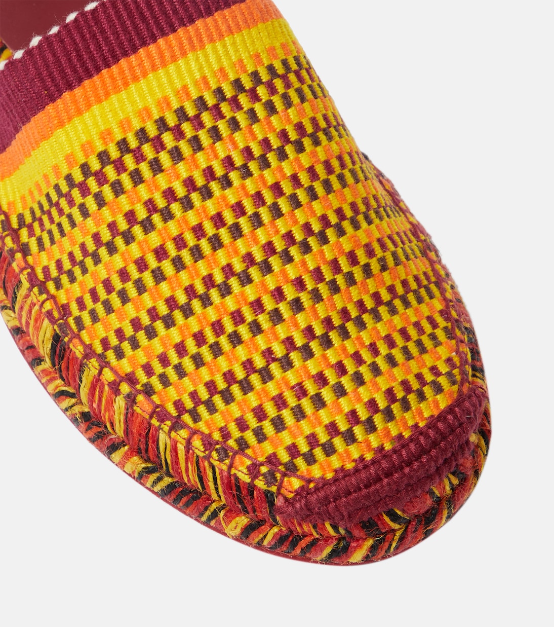 Добавьте летнее настроение в свою коллекцию обуви с эспадрильями Meril от Chloé. Эта пара соткана из ярко-красной, оранжевой и желтой пряжи и украшена плетеным элементом на ремешках на щиколотке с пряжками.