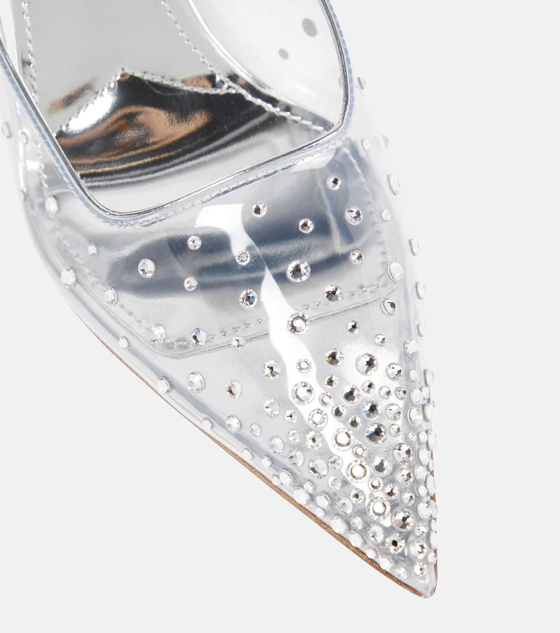 Добавьте немного блеска в ваши вечерние наряды с этими мюлями Miu Miu. Остроносая модель имеет прозрачный верх, украшенный кристаллами, и лакированный каблук.